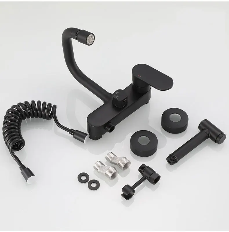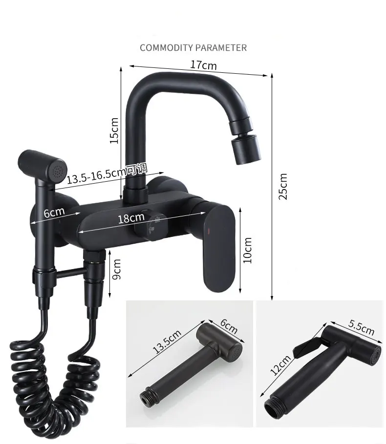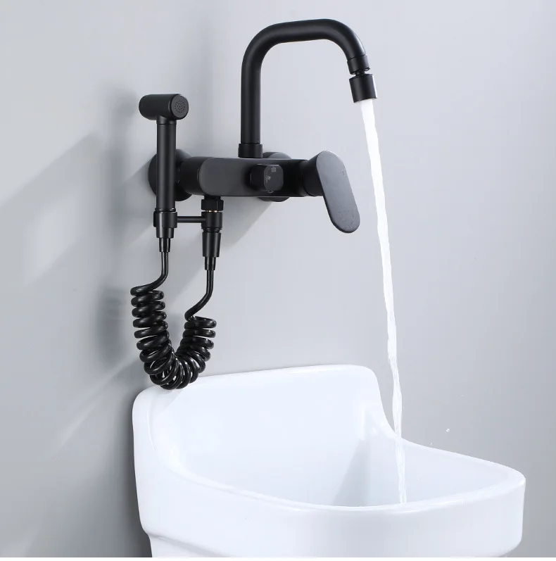 Black Brass kitchen into the wall Hot and Cold Water Faucet wash Basin mop pool Bathtub wash spray Gun Faucet EY-YH1600