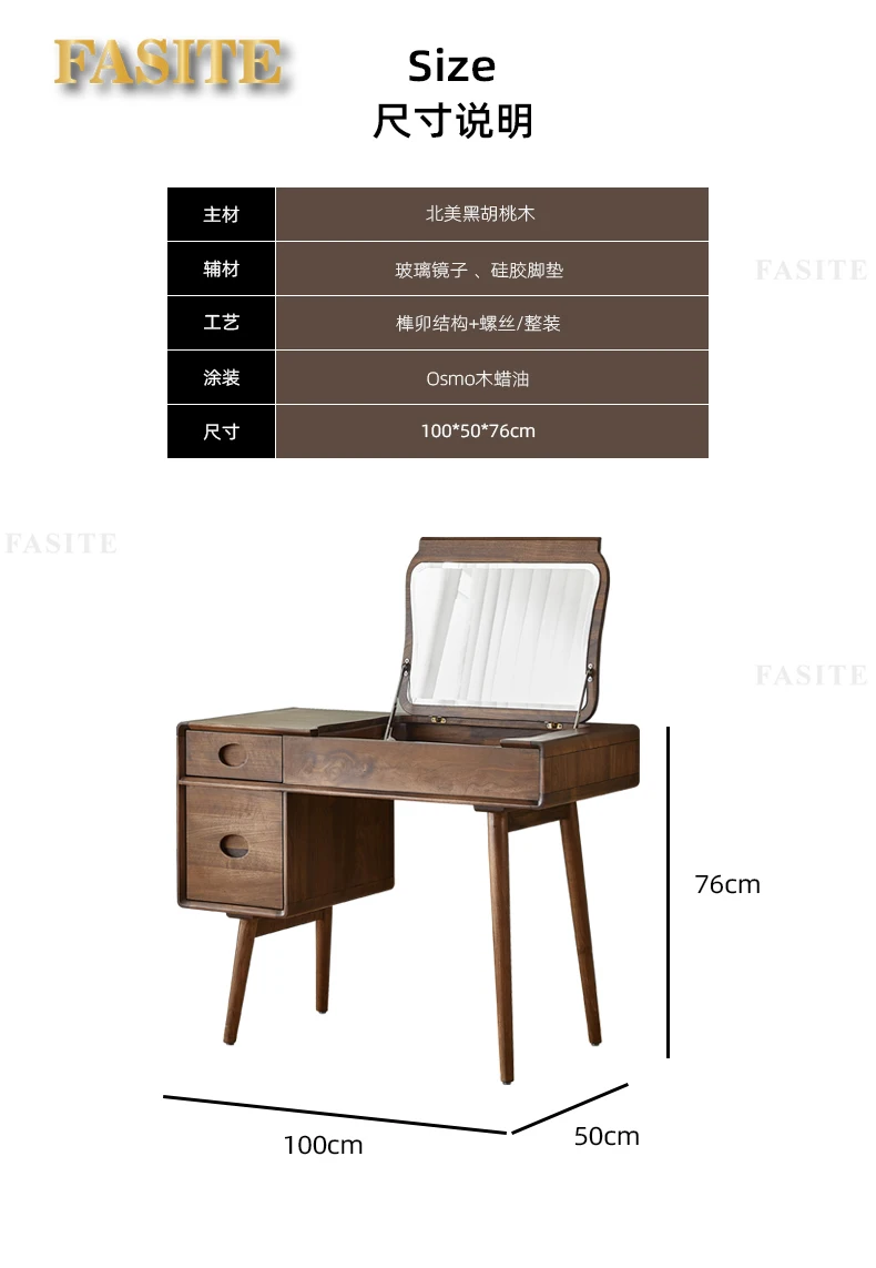 Black walnut dresser Nordic simple creative makeup table household bedroom solid wood dressing table