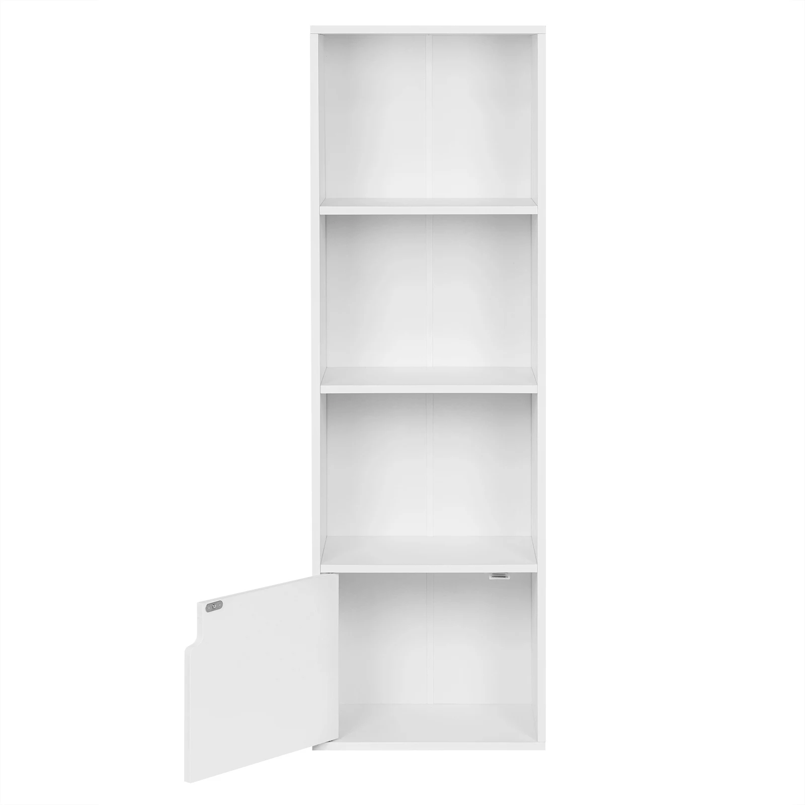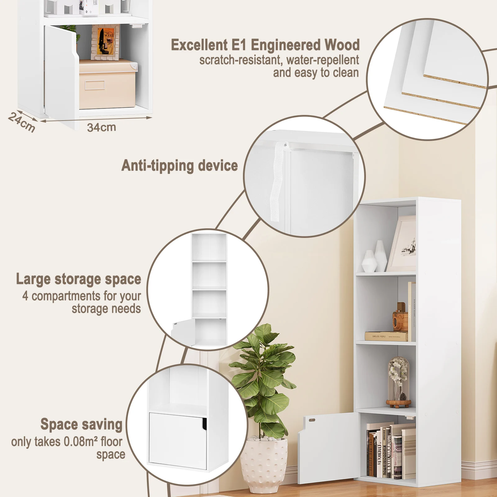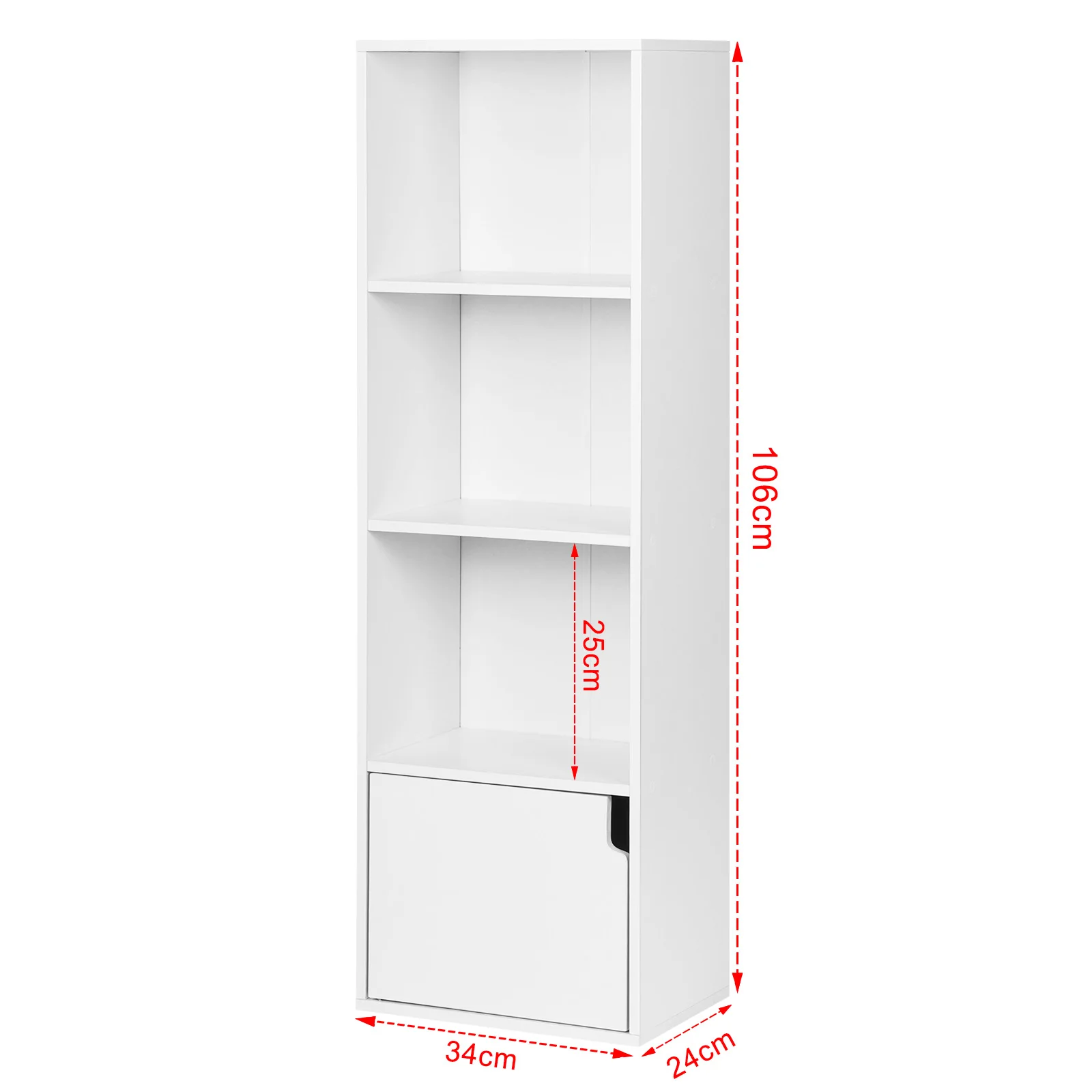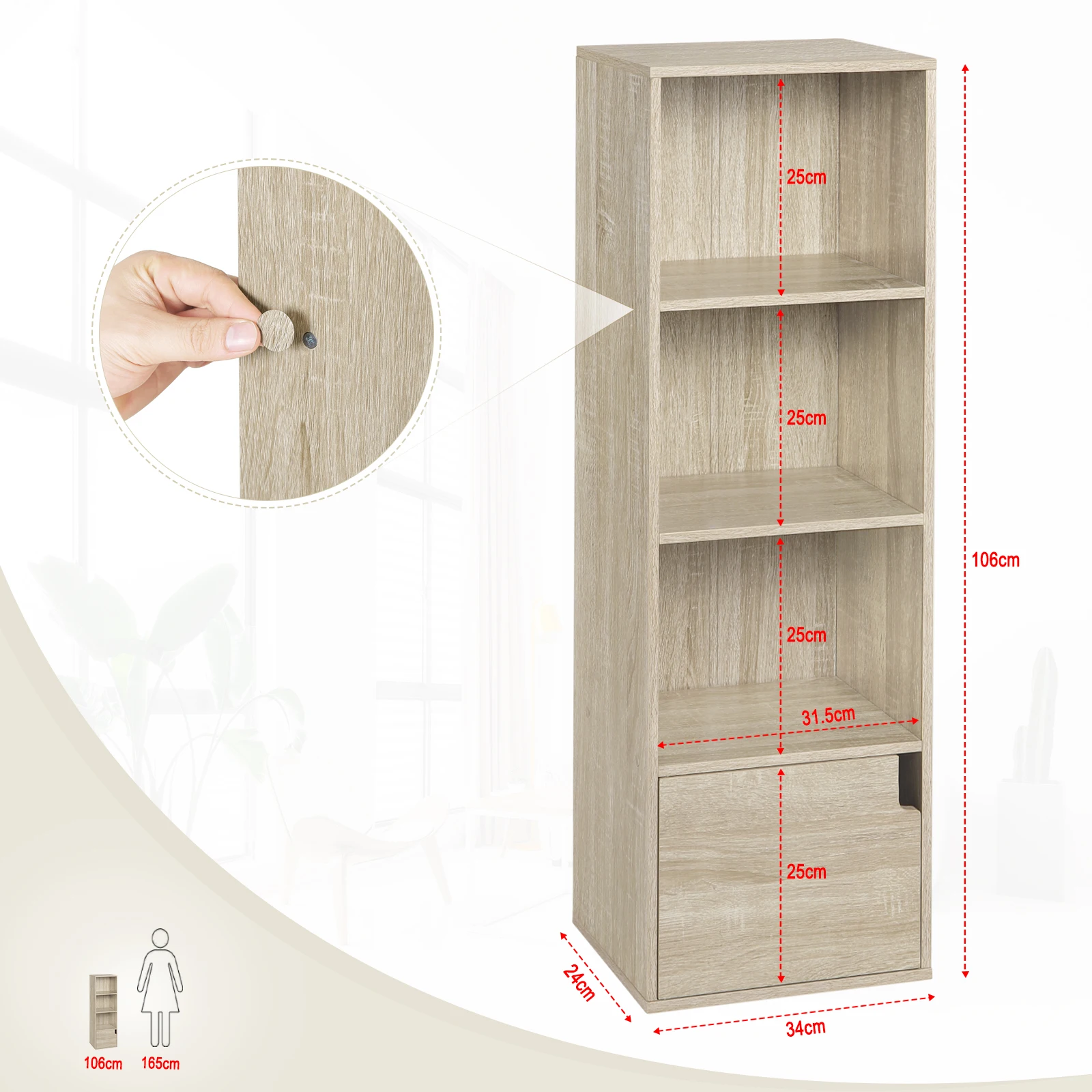 Bookcase with 4 Compartments 1 Door Standing Cube Storage Bookshelf for Living Room Bedroom Office Household