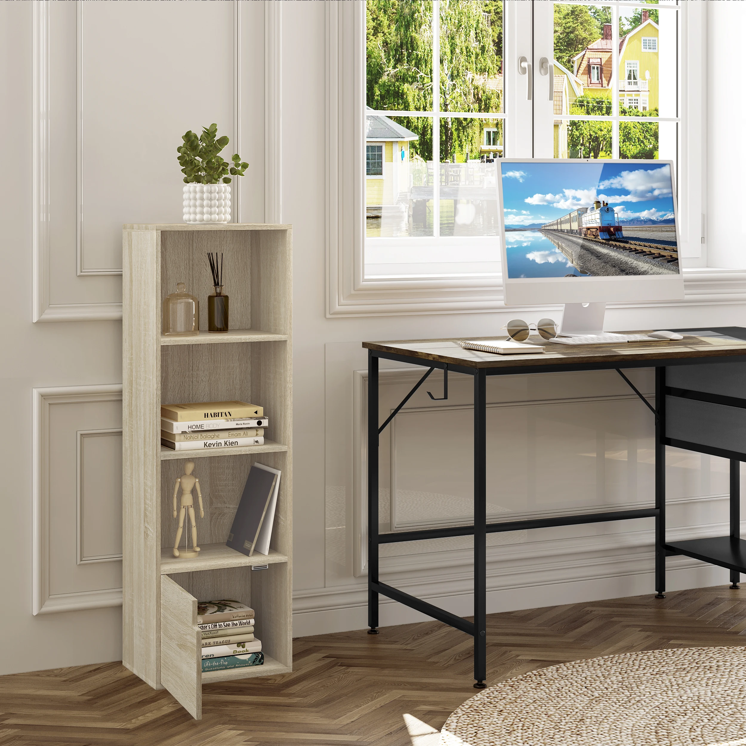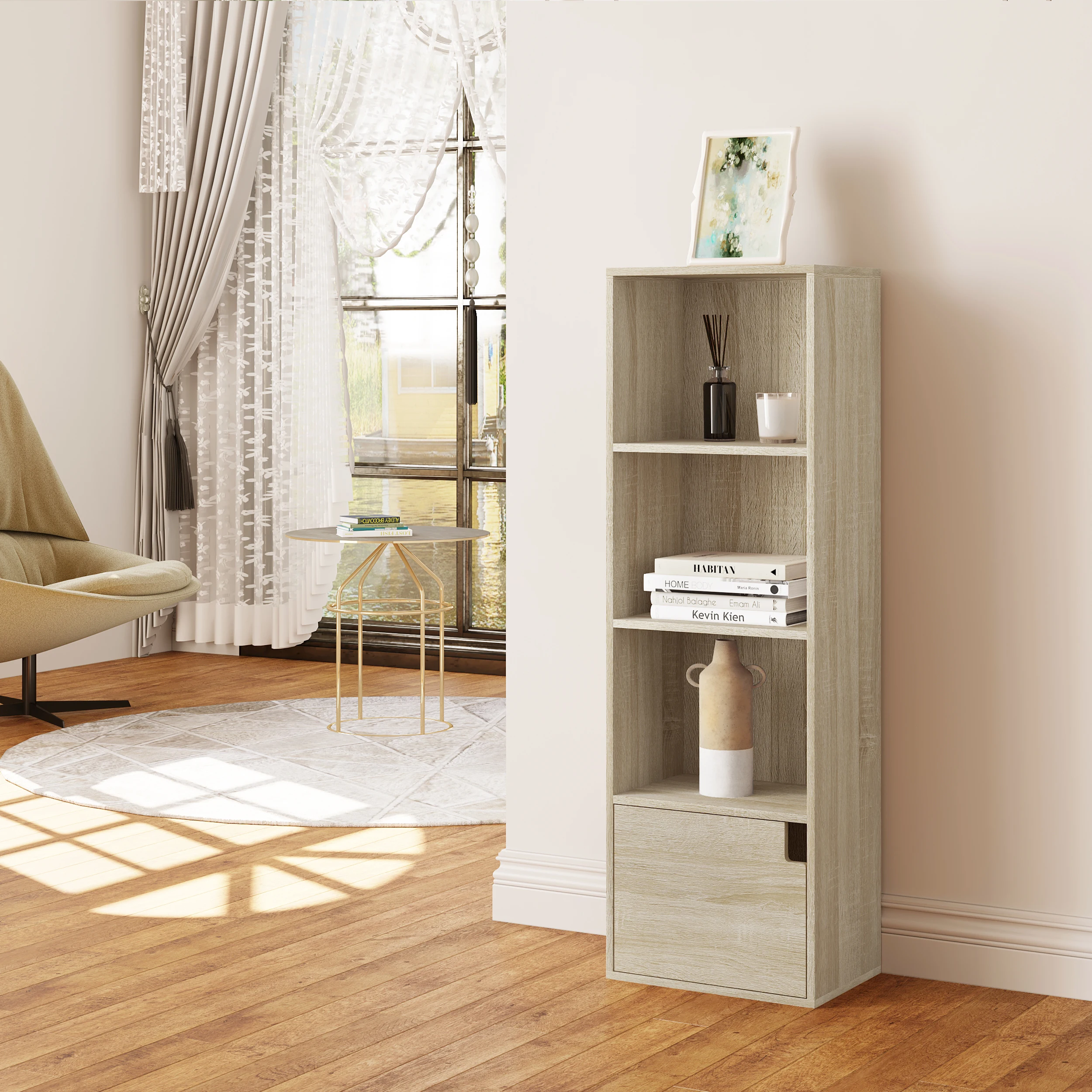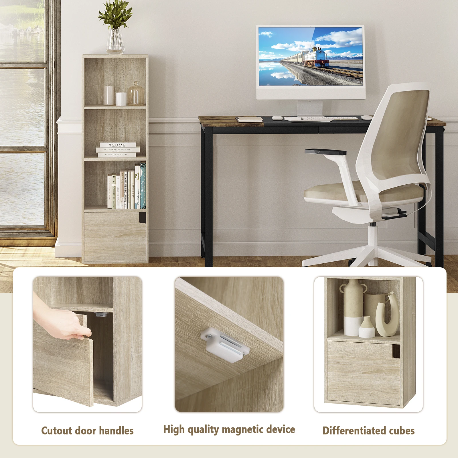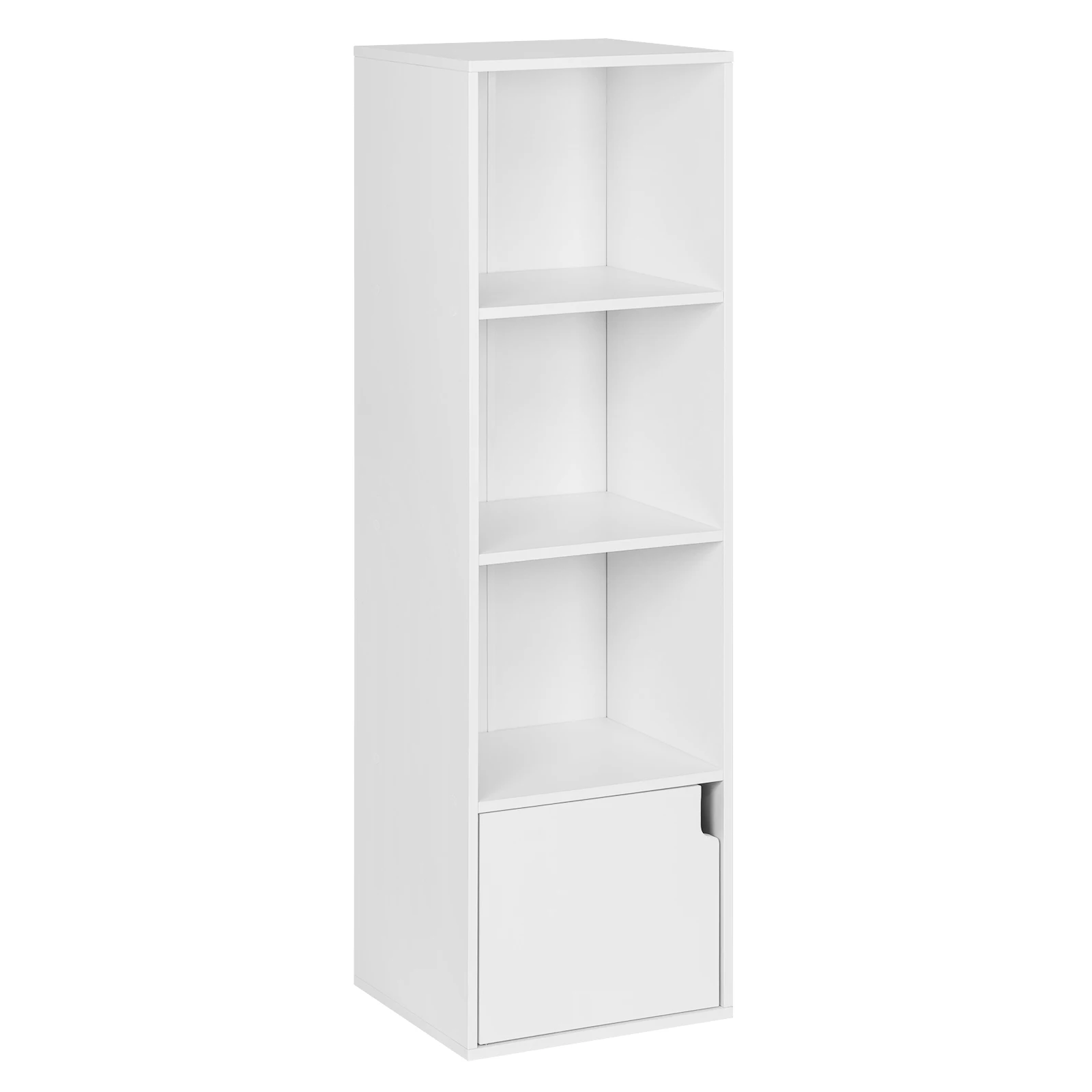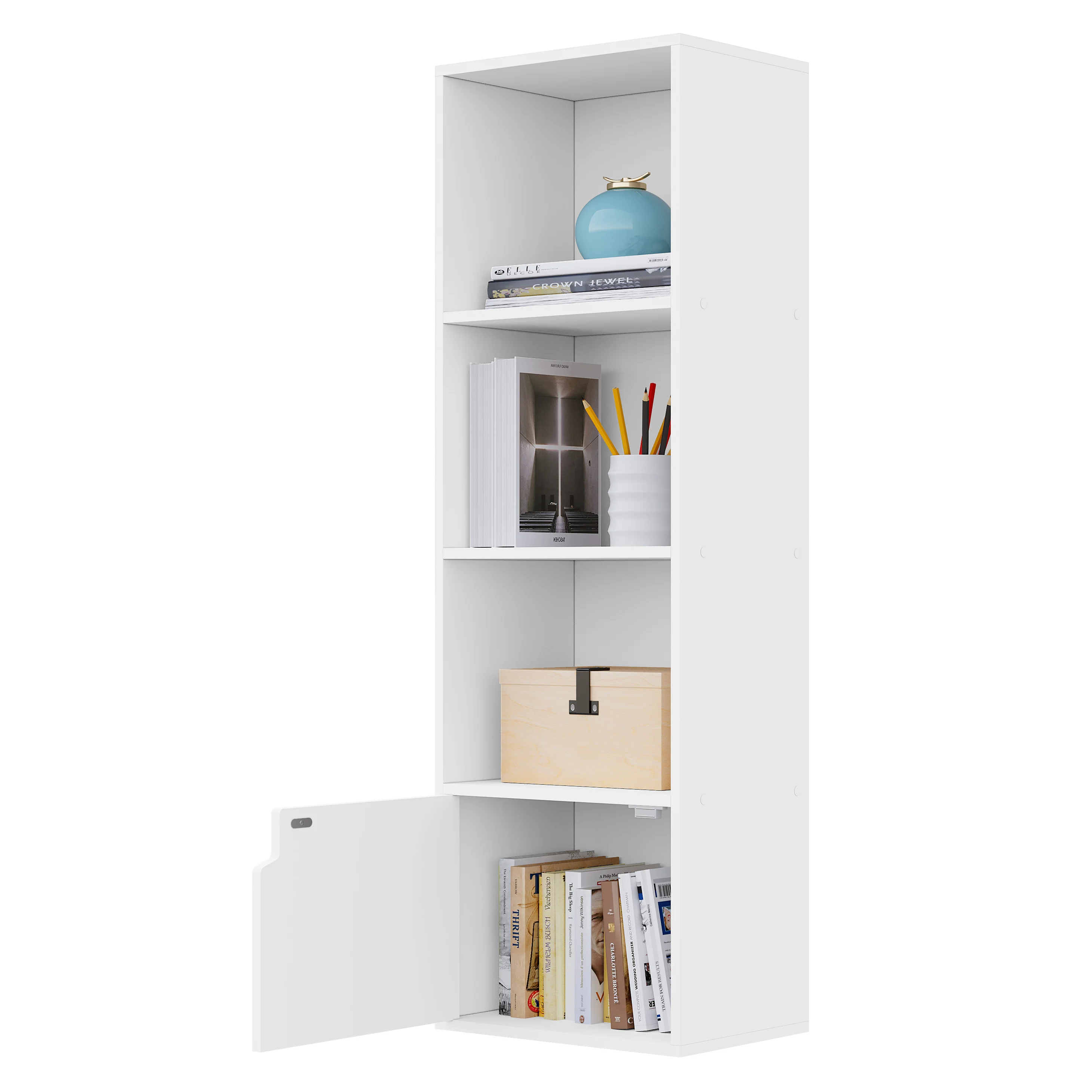 Bookcase with 4 Compartments 1 Door Standing Cube Storage Bookshelf for Living Room Bedroom Office Household