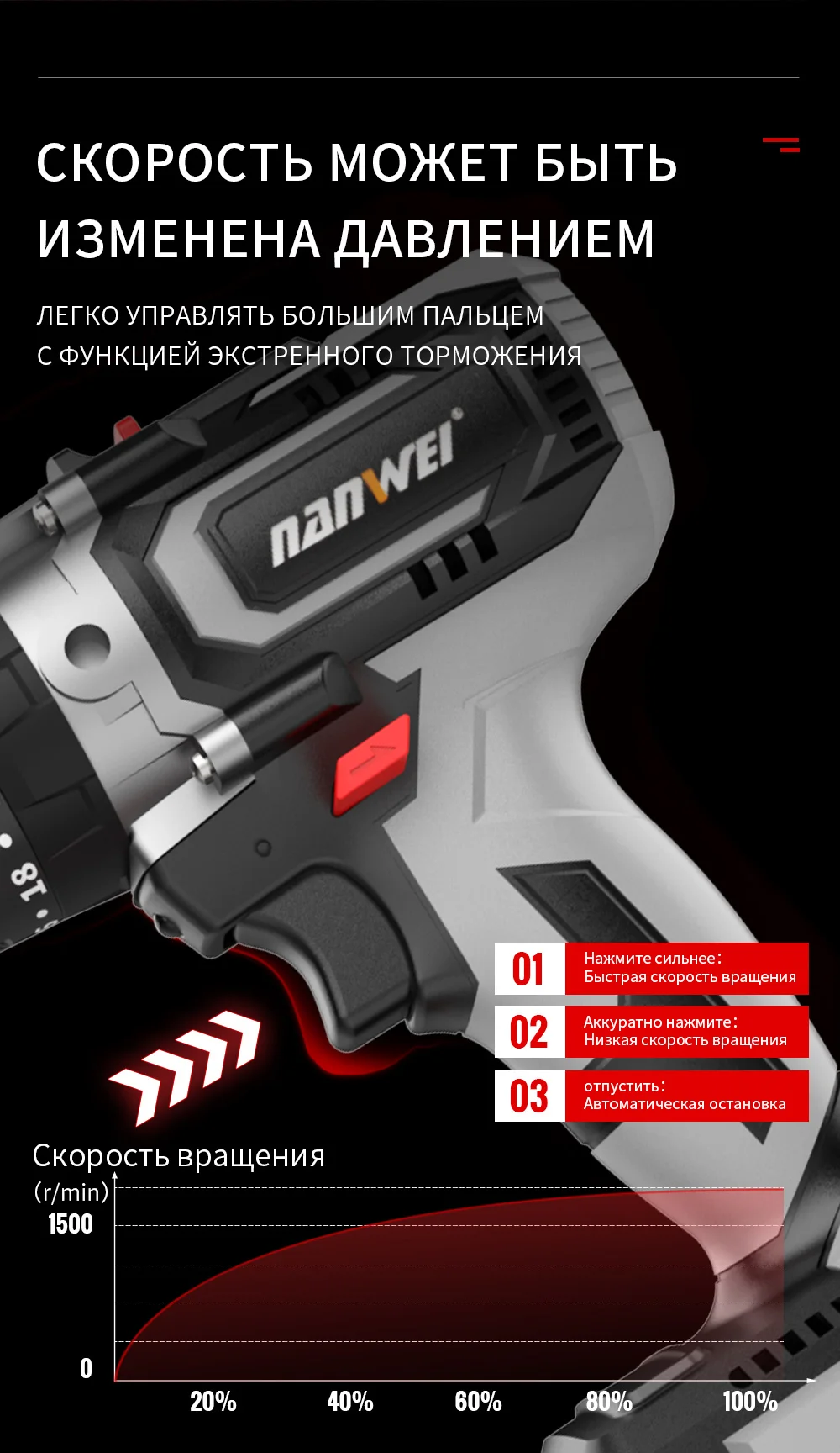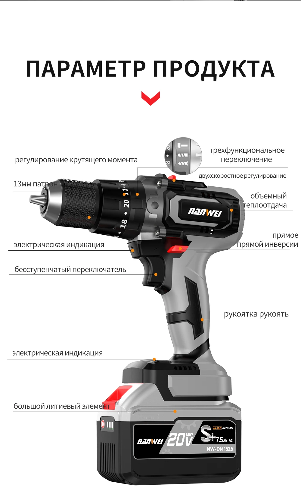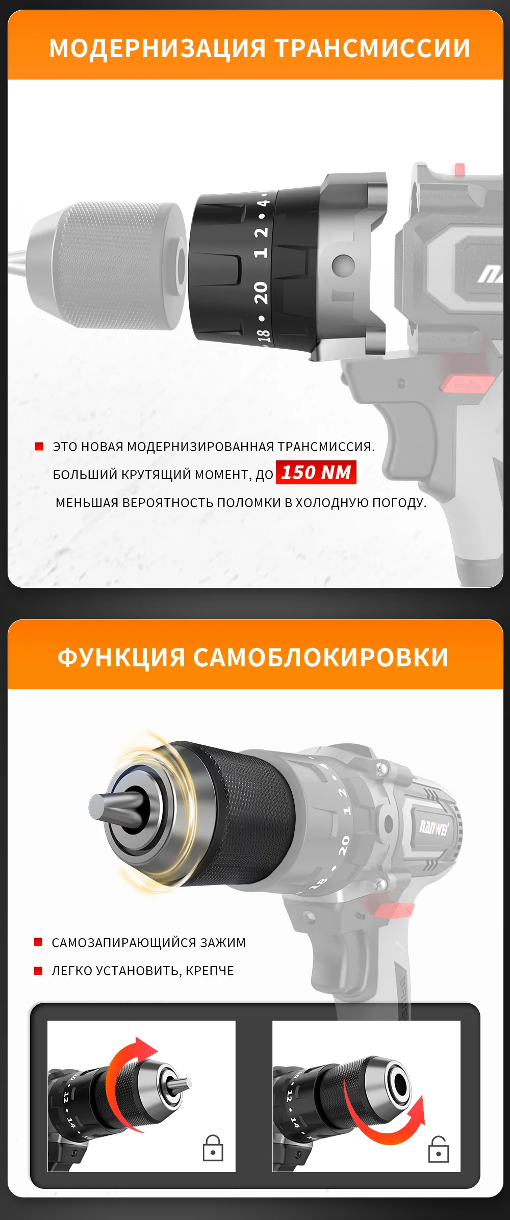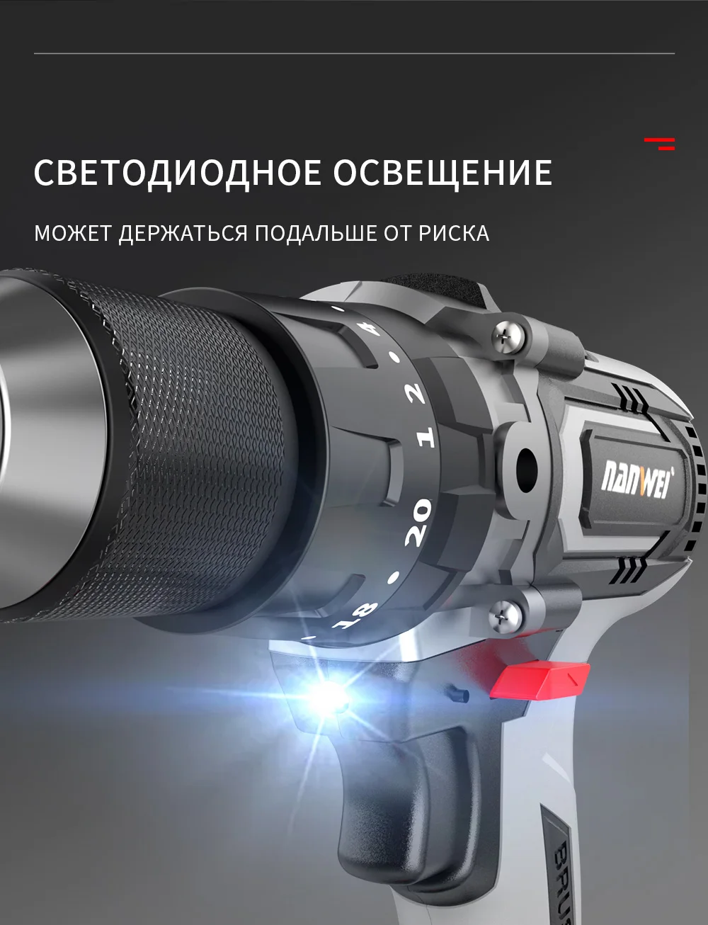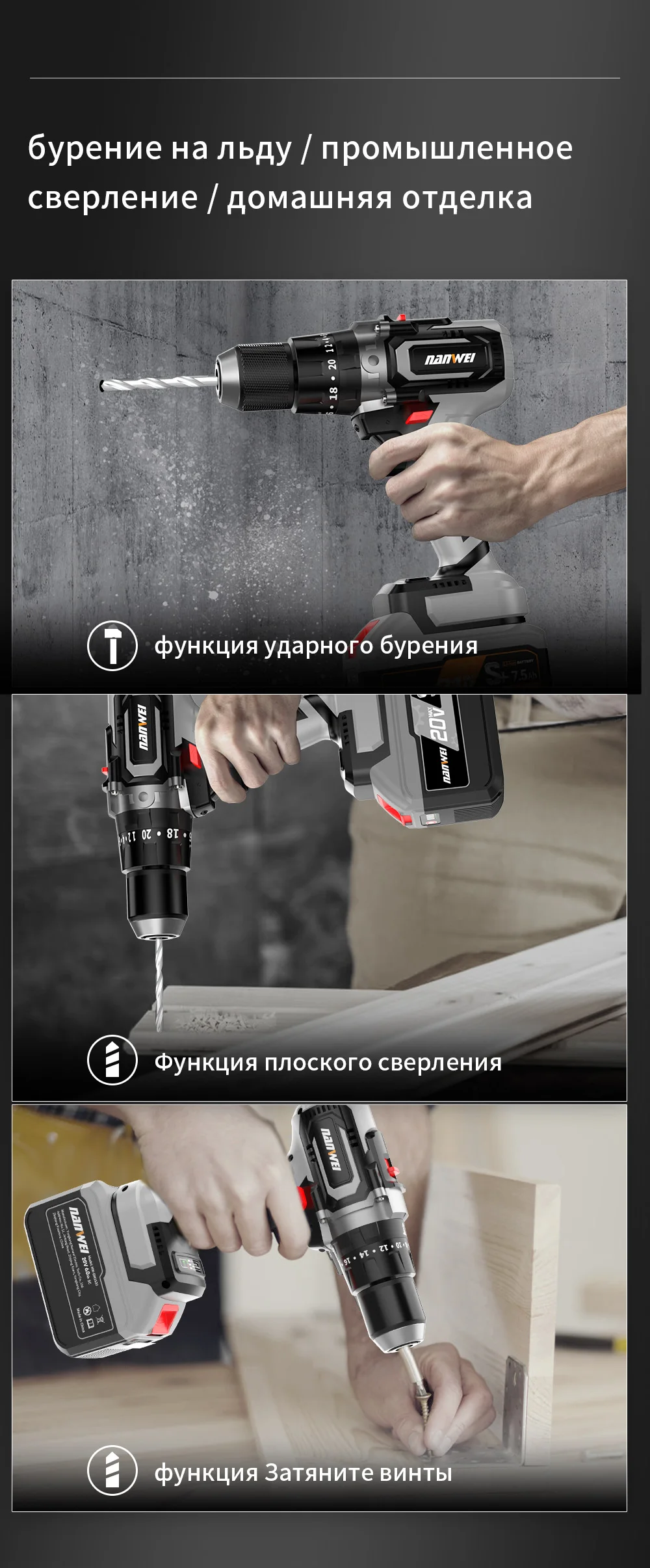 Brushless Cordless Impact Drill NANWEI Cordless 21v 13mm Ice Drill Power Tool 150NM High Torque