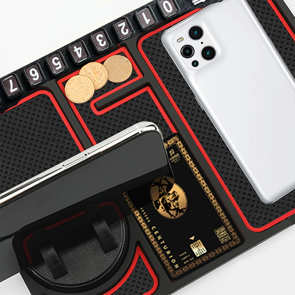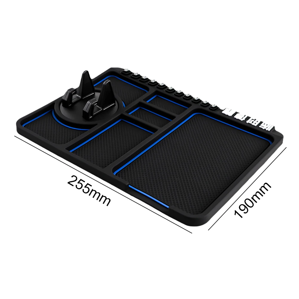 3. Powerful Storage Function: This car dashboard storage mat is multifunctional. It can place many things. There is a mobile phone holder on it, so it can become your car mobile phone support. Besides, this storage mat can hold coins, driver's license, ID card, cigarettes, dolls, car aromatherapy and other items.