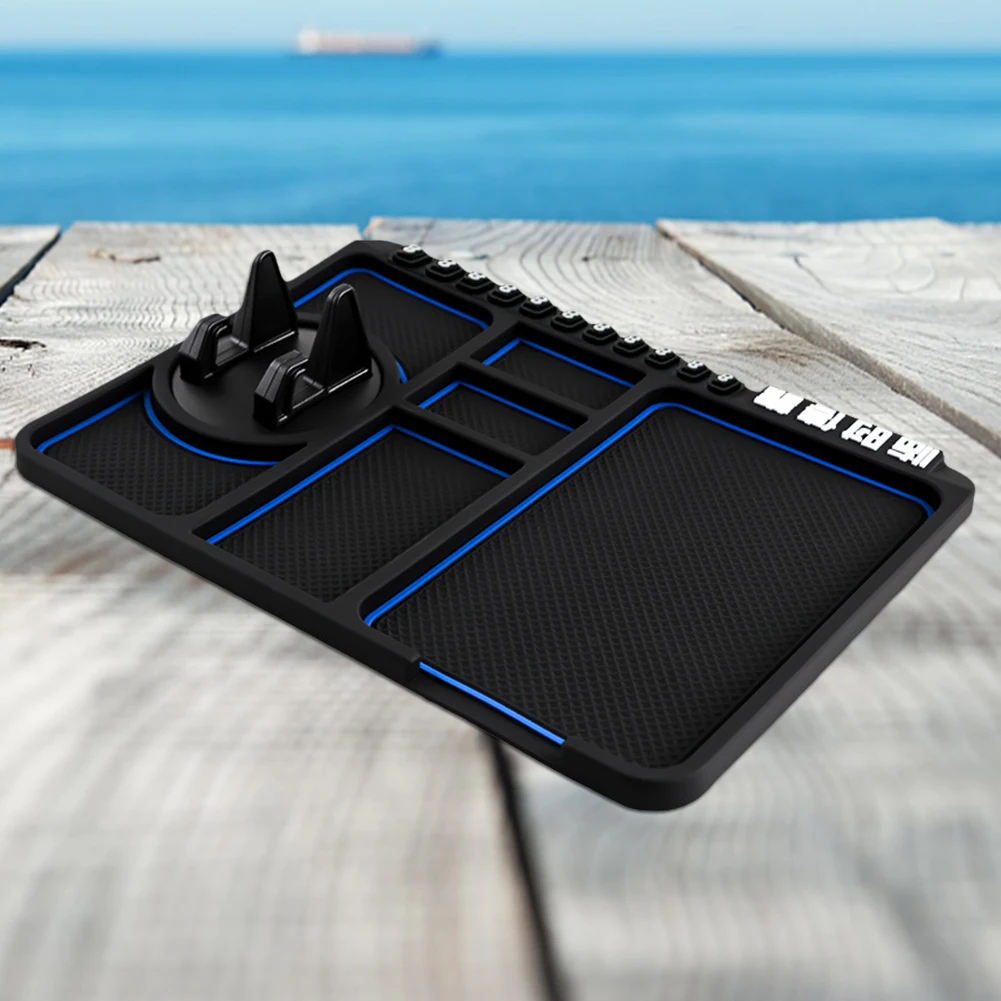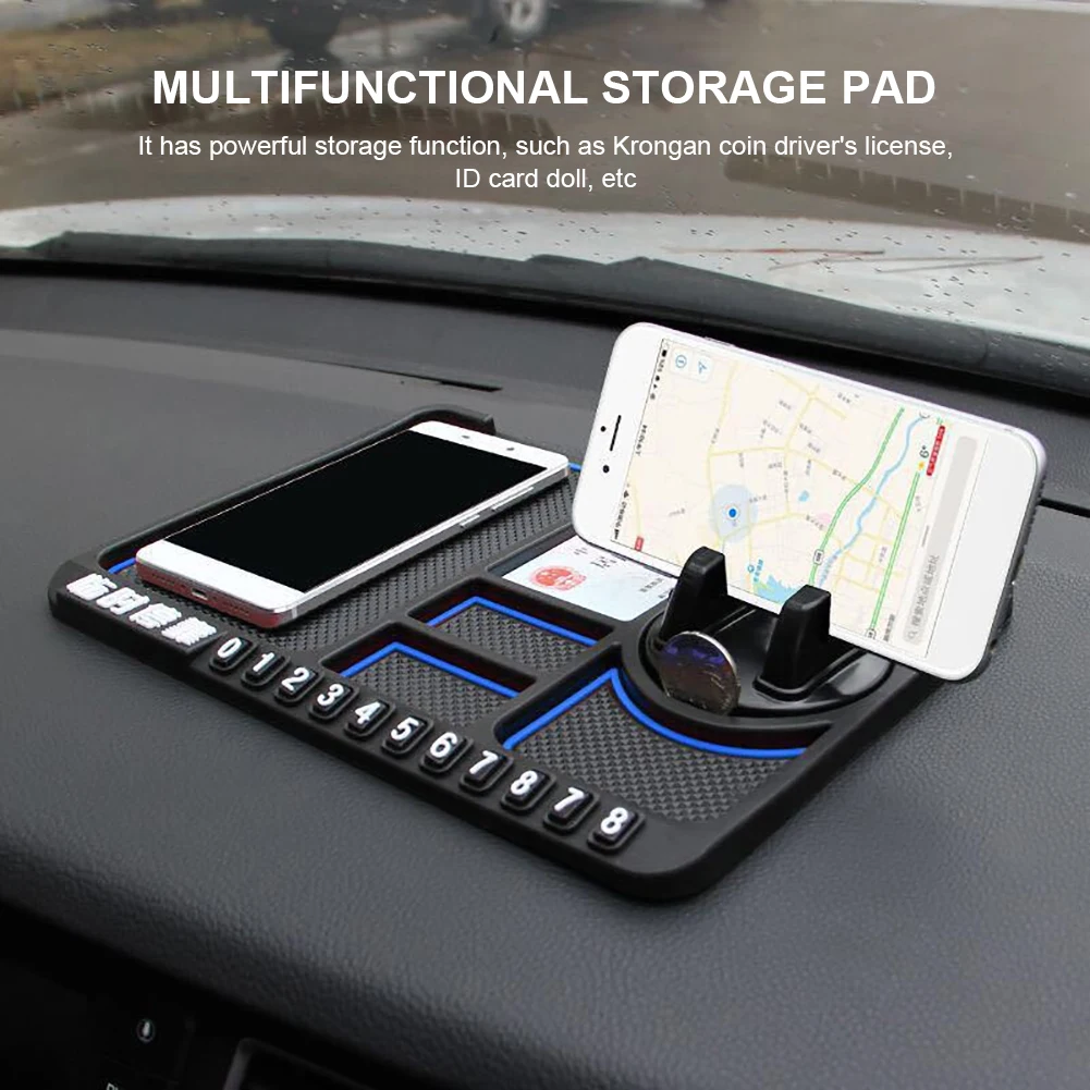 1. Anti-Slip and Stable: This car dashboard storage mat is made by silica gel. Silica gel is naturally sticky. This kind of material is anti-skid and stable. When you brake or stop sharply, this storage mat will still be firmly attached to the center console or dashboard. It also does not cause damage to the dashboard or center console. This pad can be placed anywhere on the dashboard.
