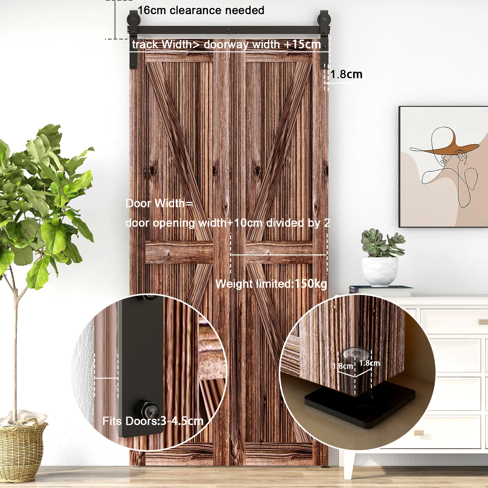 Right Choice to Your Door: This barn door hardware kit fits 1.2“-1.7” thickness door; Door weight capacity: 100kg. With integrated spring door stops reducing the vibration for quiet closing.
