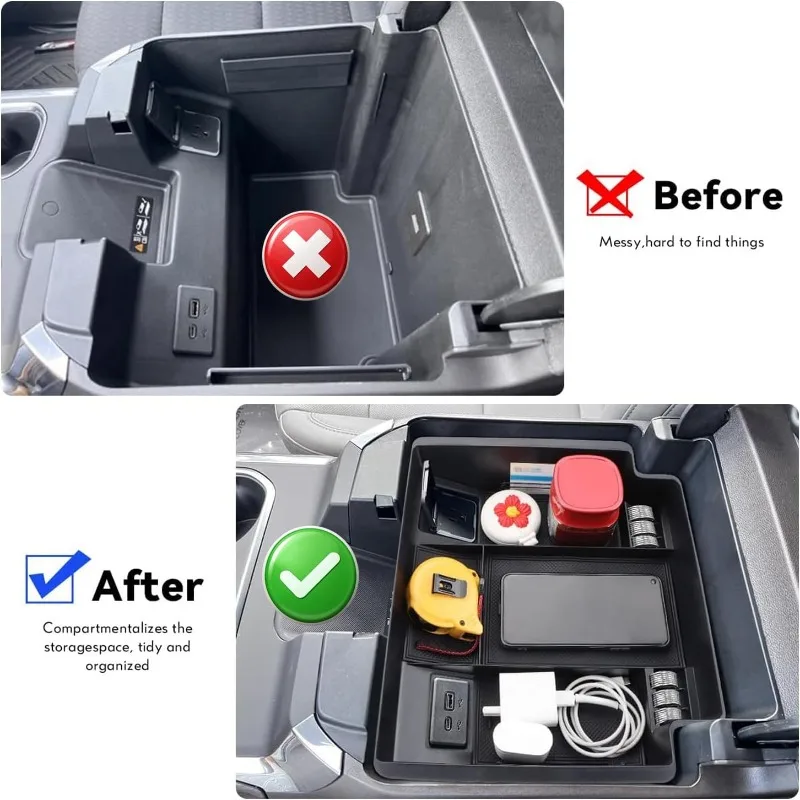 【Not Fits】 This console organizer doesn't fit 2015-2023 Silverado & Sierra 2500 HD/3500 HD, 2015-2023 Yukon/Yukon XL/Suburban/Tahoe, 2019-2022 Silverado & Sierra 1500, and the unrefreshed model Silverado/Sierra. Note: It won’t fit if you have a safe in the console. NOTE: NOT FIT ALL(Split-Bench Seat Folding Front Armrest)