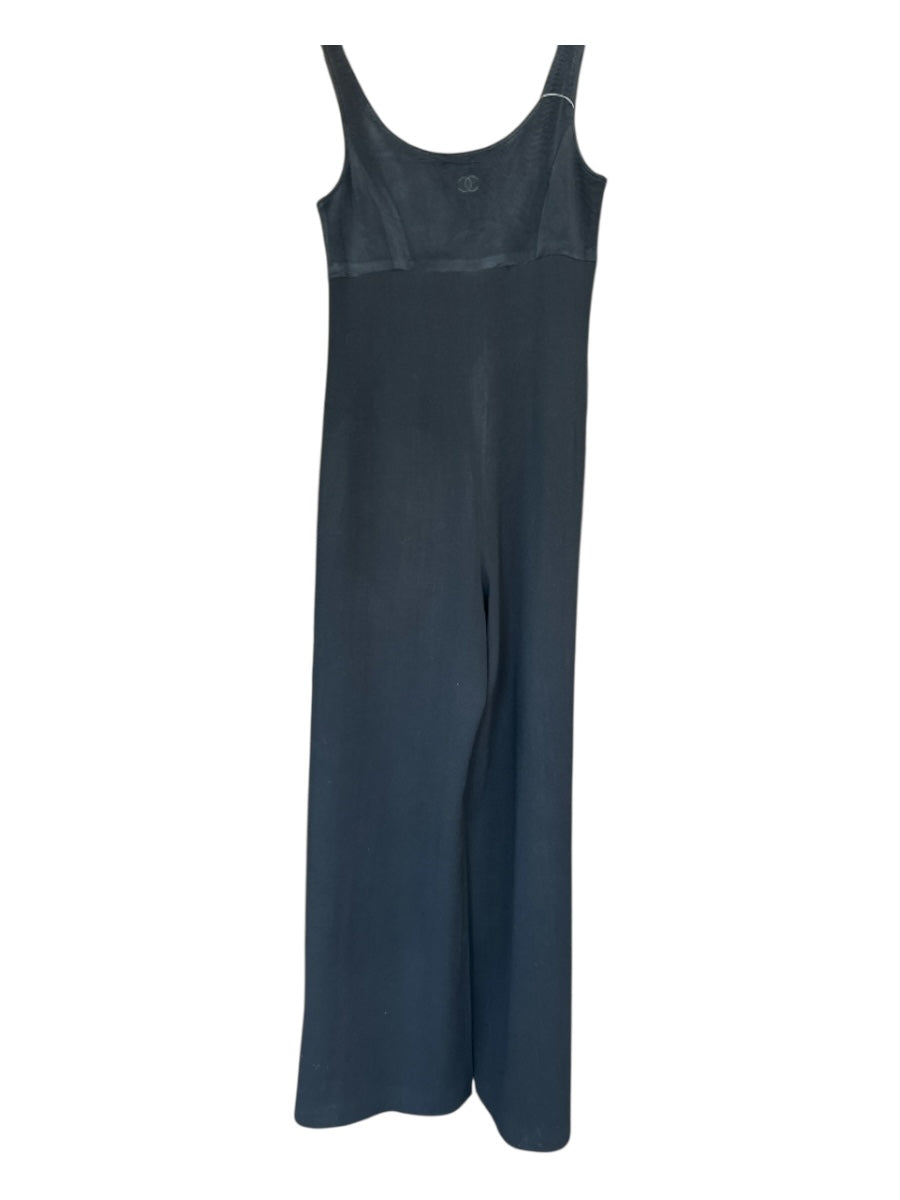 Chanel Size 40 Black Nylon Blend Sleeveless Logo Wide Leg Back Zip Jumper