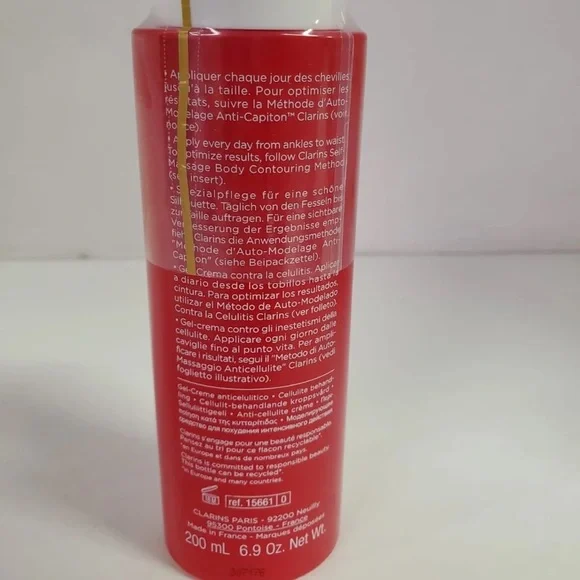 Brand New. Never used.Retails for $716.9 ozVisibly correct the appearance of cellulite with Clarins Body Lift Cellulite Control. Clarins breaks the vicious cellulite cycle with this creamy slimming treatment. Body Lift Cellulite Control targets cellulite before it starts, and visibly smoothing hips, buttocks and thighs for a slimmer silhouette. Feel confident in shorts again.Targeted area: BodySkin/hair type: All skin typesActive ingredients: Aqua, alcohol, dicaprylyl carbonate, glycerin