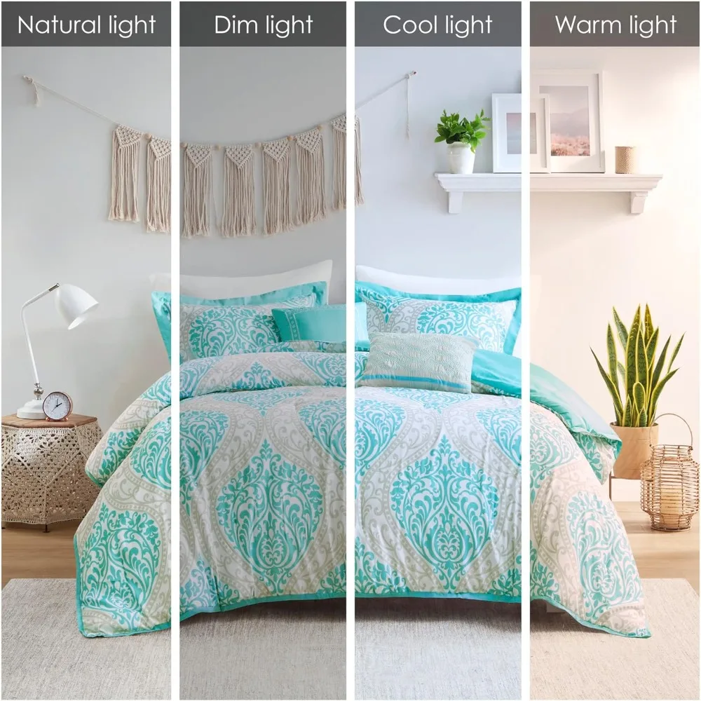 Comforter Set Twin/Twin XL Size, Aqua Blue/Gray, Damask, 4 Piece Bed Sets, All Season Ultra Soft Microfiber Teen Bedding, Great
