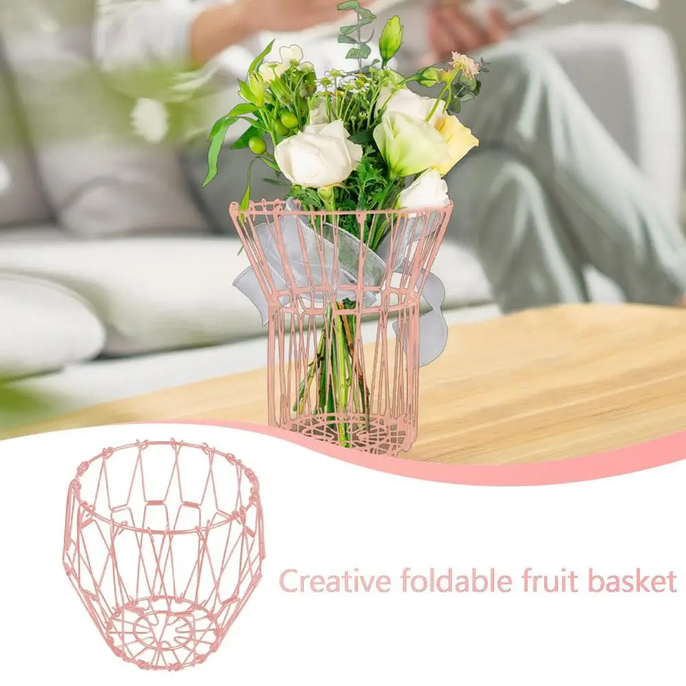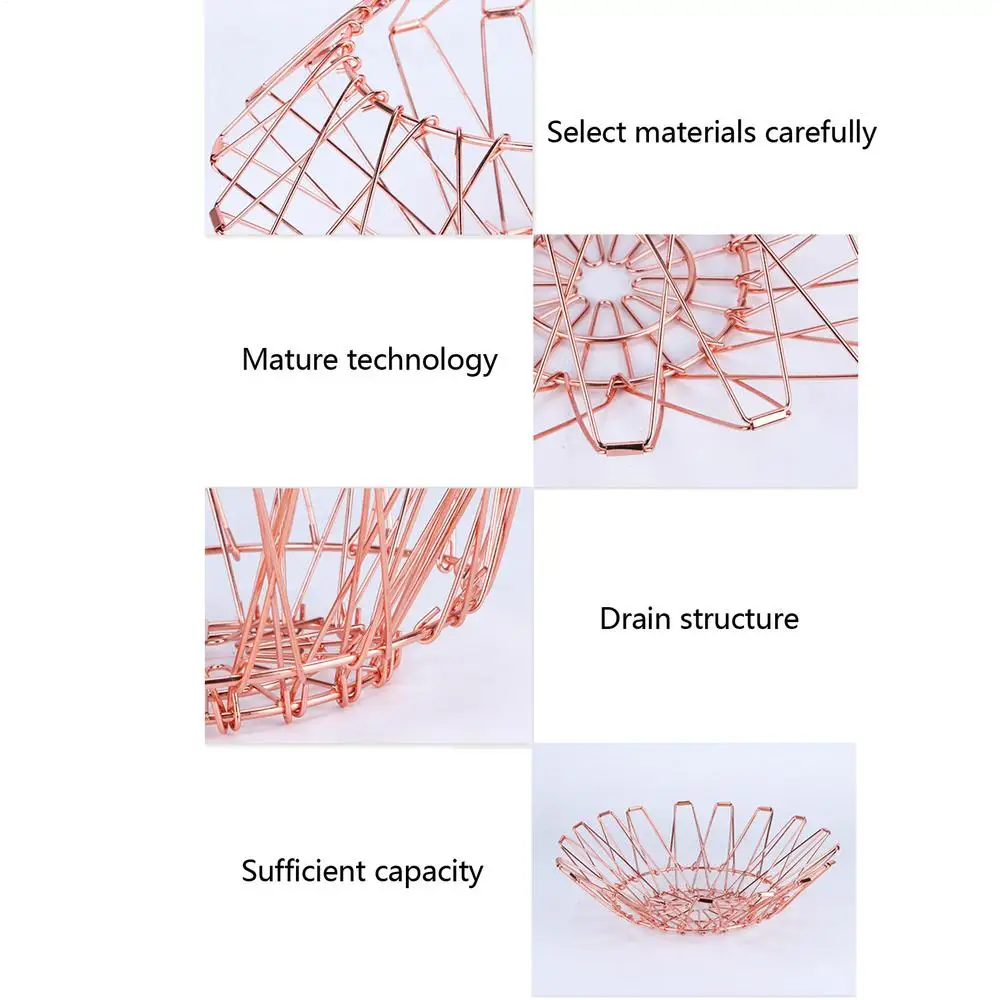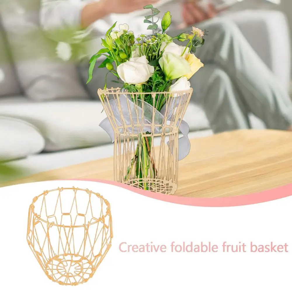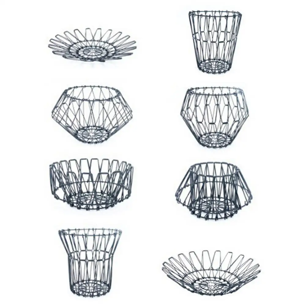 Creative Foldable Fruit Basket Home Snacks Storage Disc Versatile Scalable Metal Wire Basket Collapsible Dish Plate Bowl
