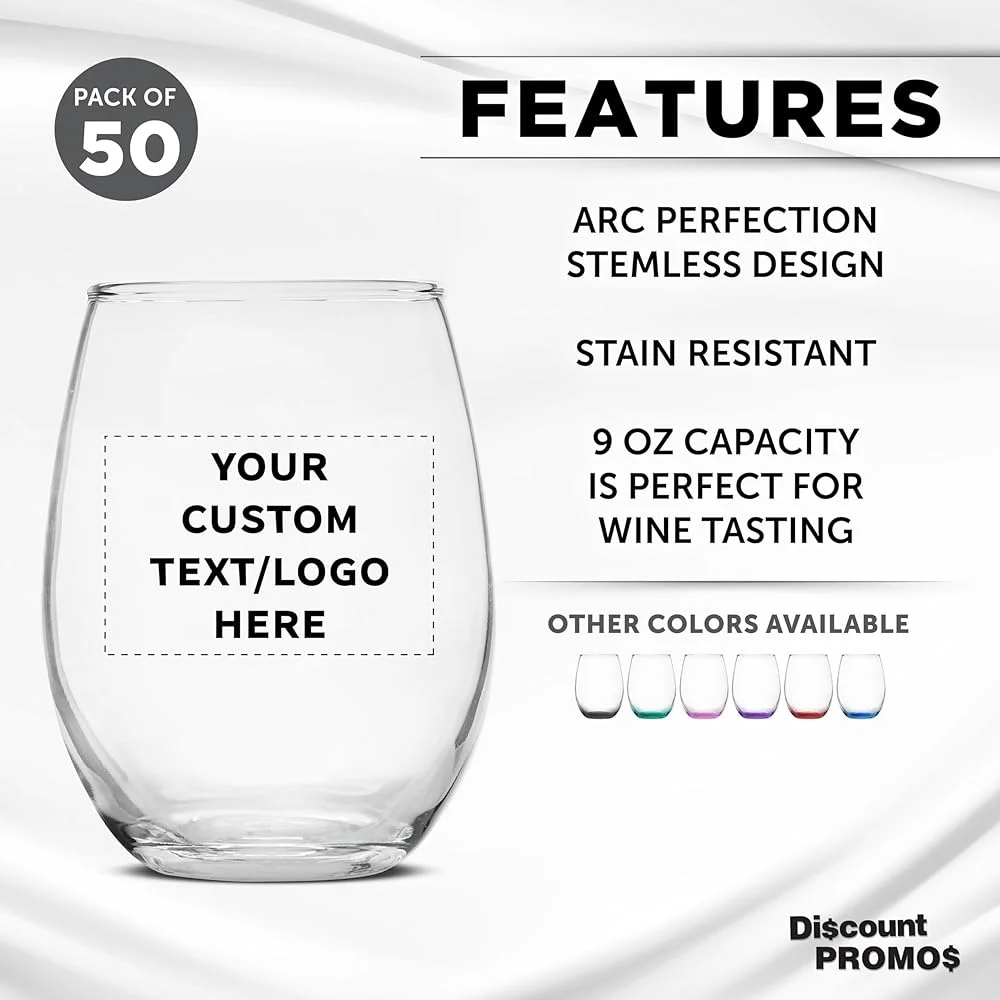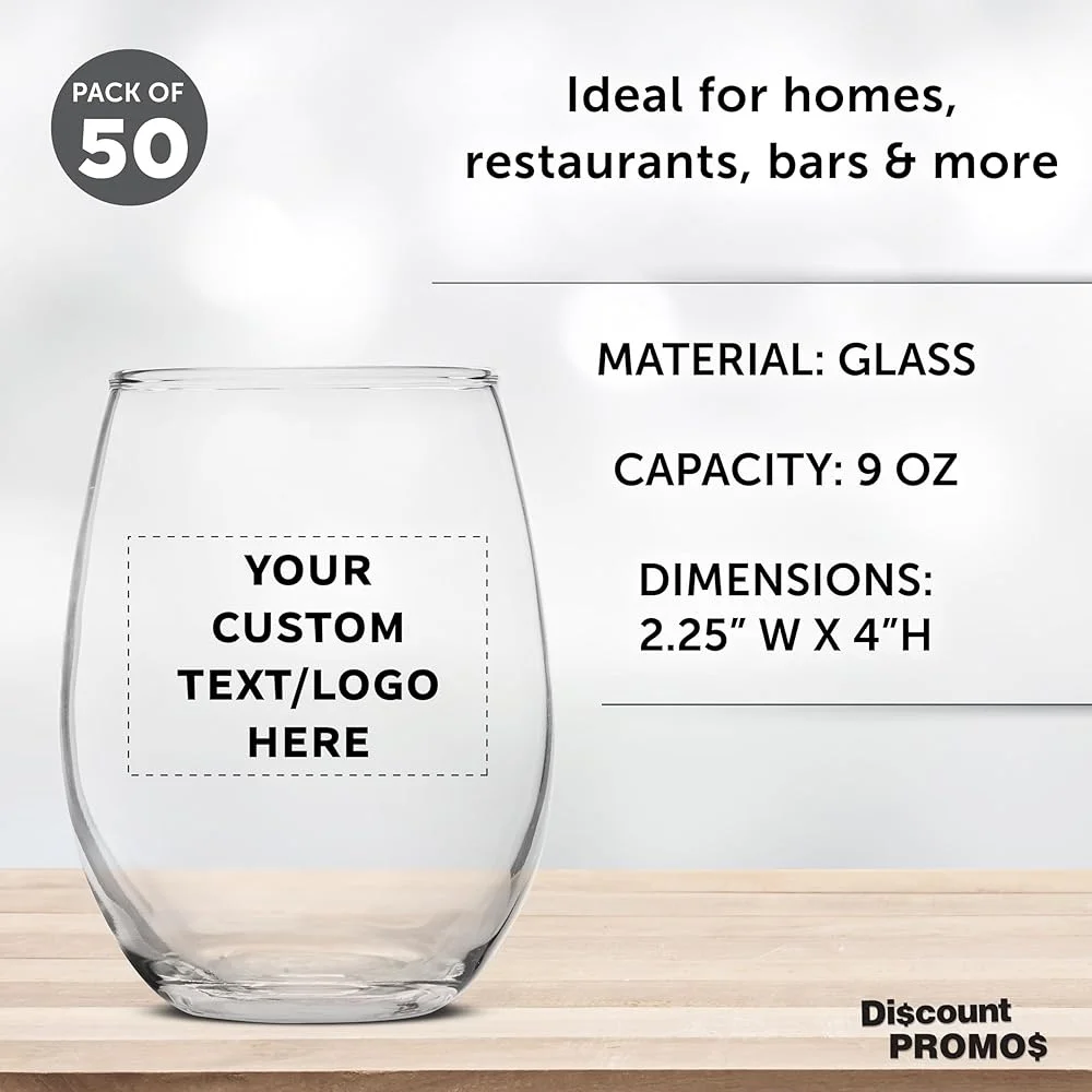 Custom Stemless Wine Glasses 9oz Set of 50 Personalized Bulk Wedding Favors Bachelorette Party Decorations Event Supplies