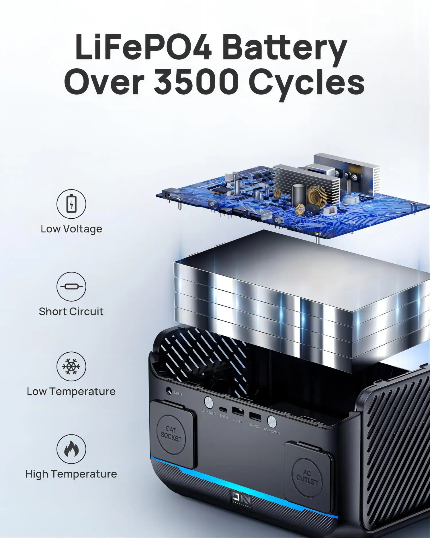 The 268.8Wh indoor home battery backup & outdoor solar generator can achieve more than 3500 charge-discharge cycles.