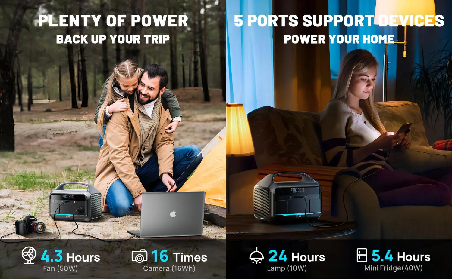 Power your smartphone, tablet, laptop, camera, light, drones, fans, in-car appliances, CPAP machine and more at anytime.