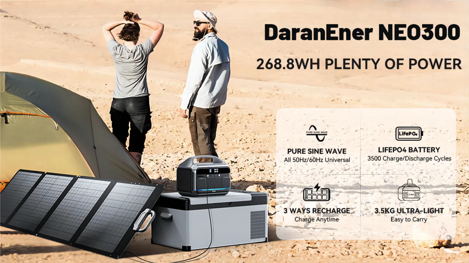 The DaranEner portable power station 300W features long-lasting LiFePO4 batteries and an advanced battery management system (BMS) to protect your equipment from over-voltage, over-discharge/charge, over/short current, over-temperature, and more, and pure sine wave output protects small appliances from harm.