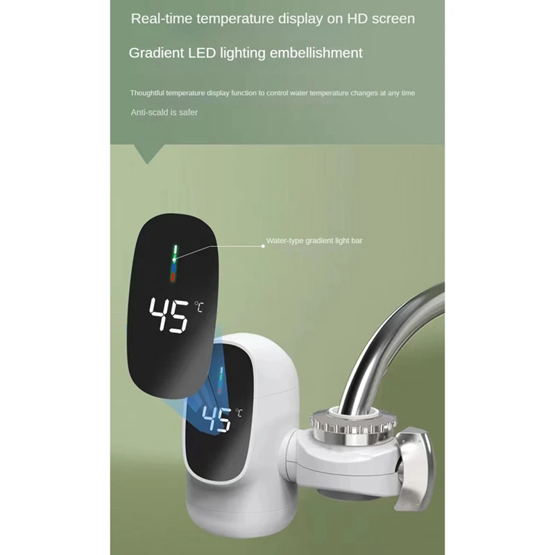 3 seconds quick heating: instant hot water, no need to wait, save the trouble of preheating. The water temperature is between 35℃-50℃, which can meet daily needs.