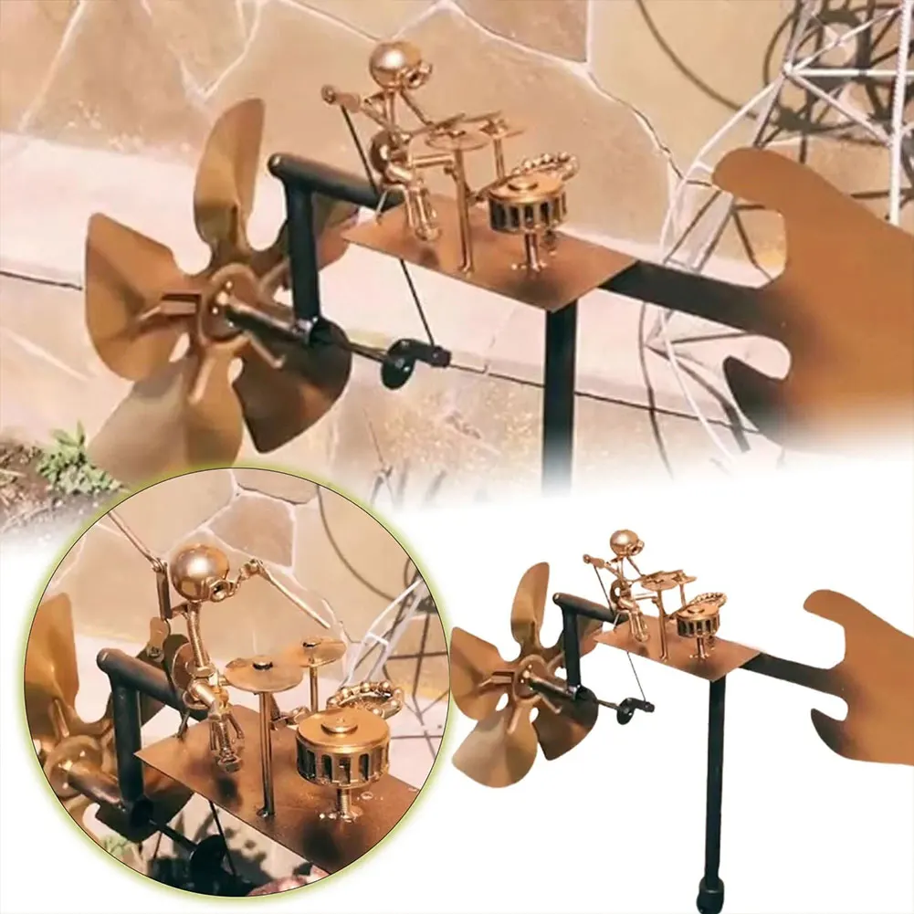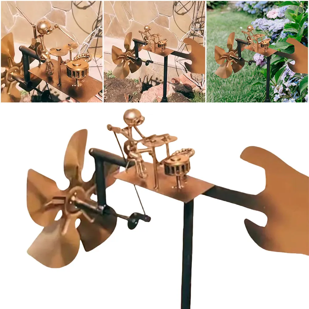 Metal Drummer Windmill Statue Beat The Drums with The Wind Decorative Wind Power Rock Art Statue Percussionist Music Figurines and Statues for Garden Yard Patio Lawn Porch Backyard