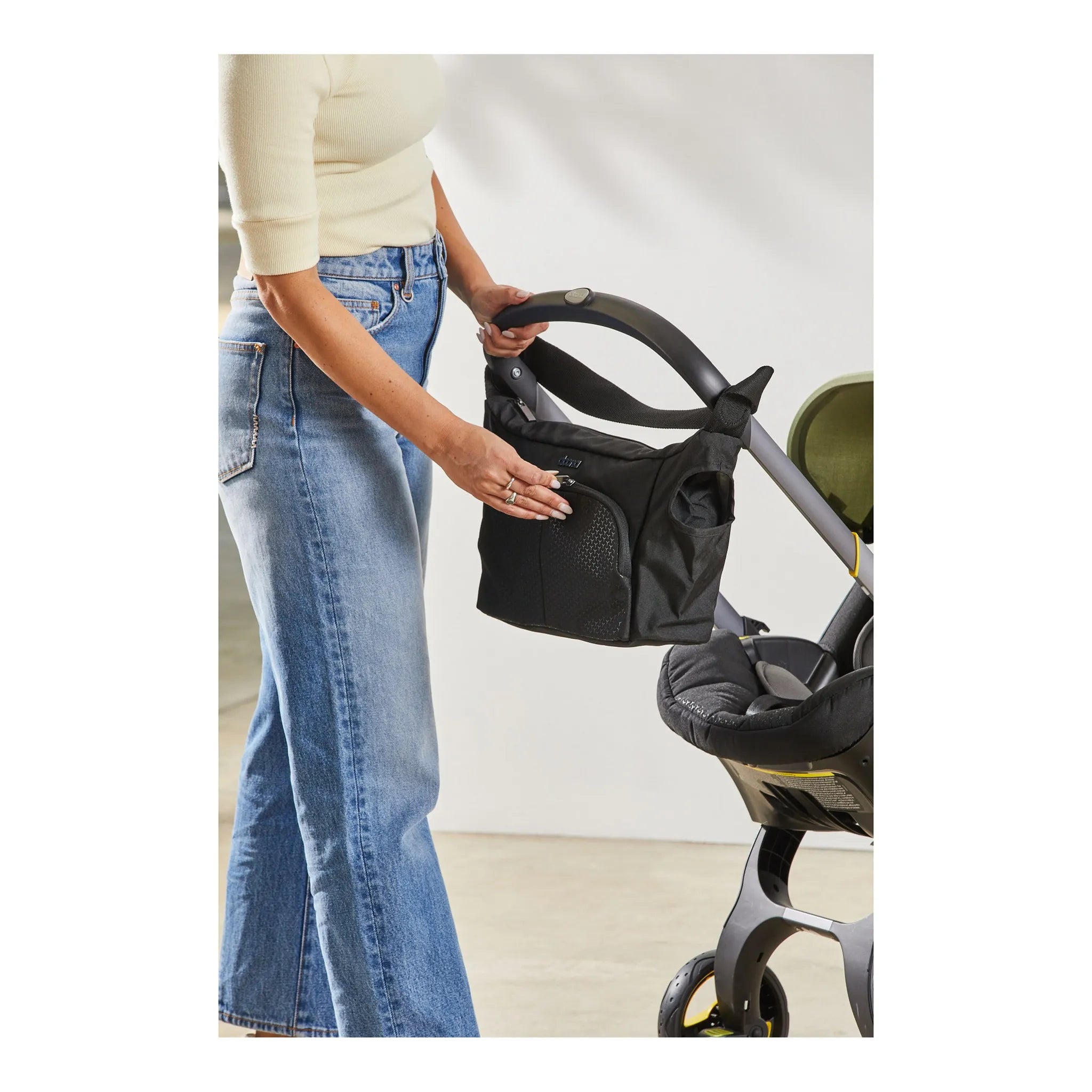 The compact and light-weight bag fits on the handle of your Doona with unique quick-release Doona connectors. The Essentials bag maintains Doona's stability, and prevents entanglement hazard. The two-sided bottle holders and the top and side zippered openings provide quick and easy access to all your essentials. The Essentials Bag allows you to be hands-free all day long. A foldable changing mat is included.