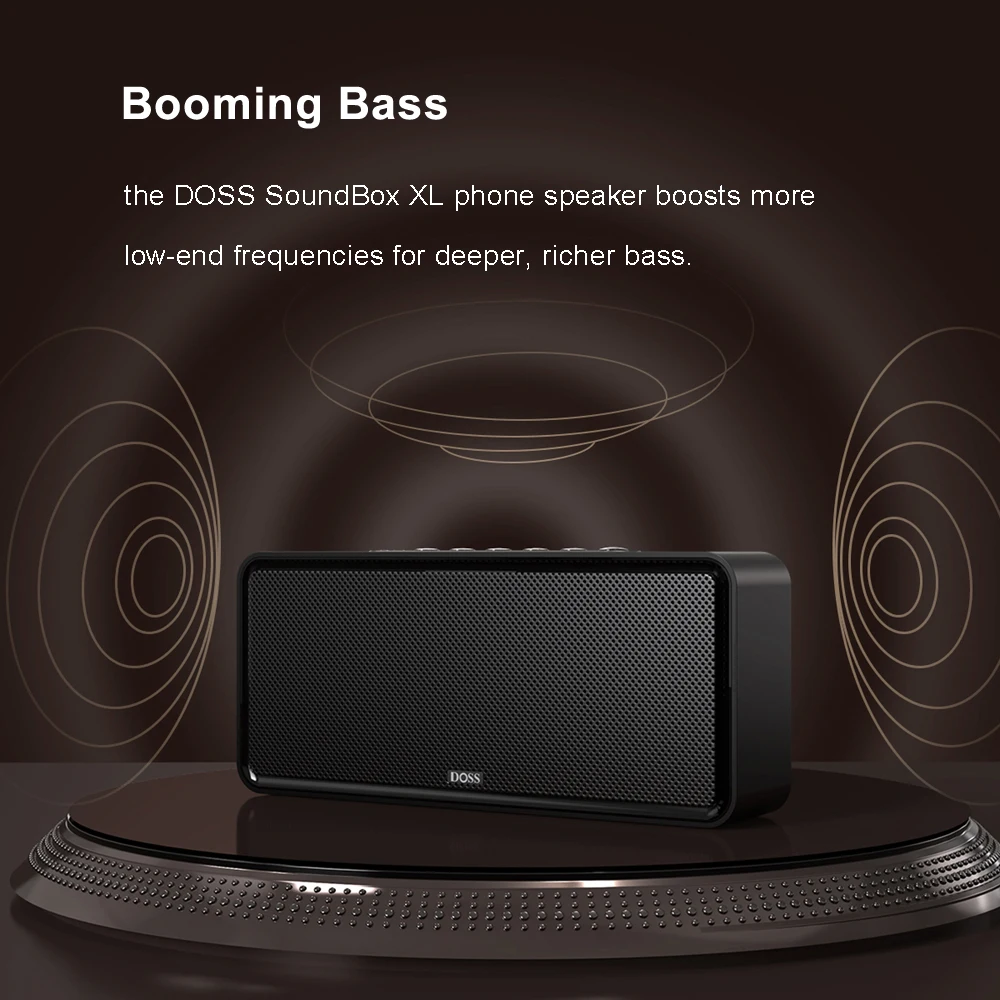 Powered by a 12W subwoofer and dual passive radiators, the DOSS SoundBox XL home speaker boosts more low-end frequencies for deeper, richer bass. Feel and hear the beat around you with heavy bass with less distortion.