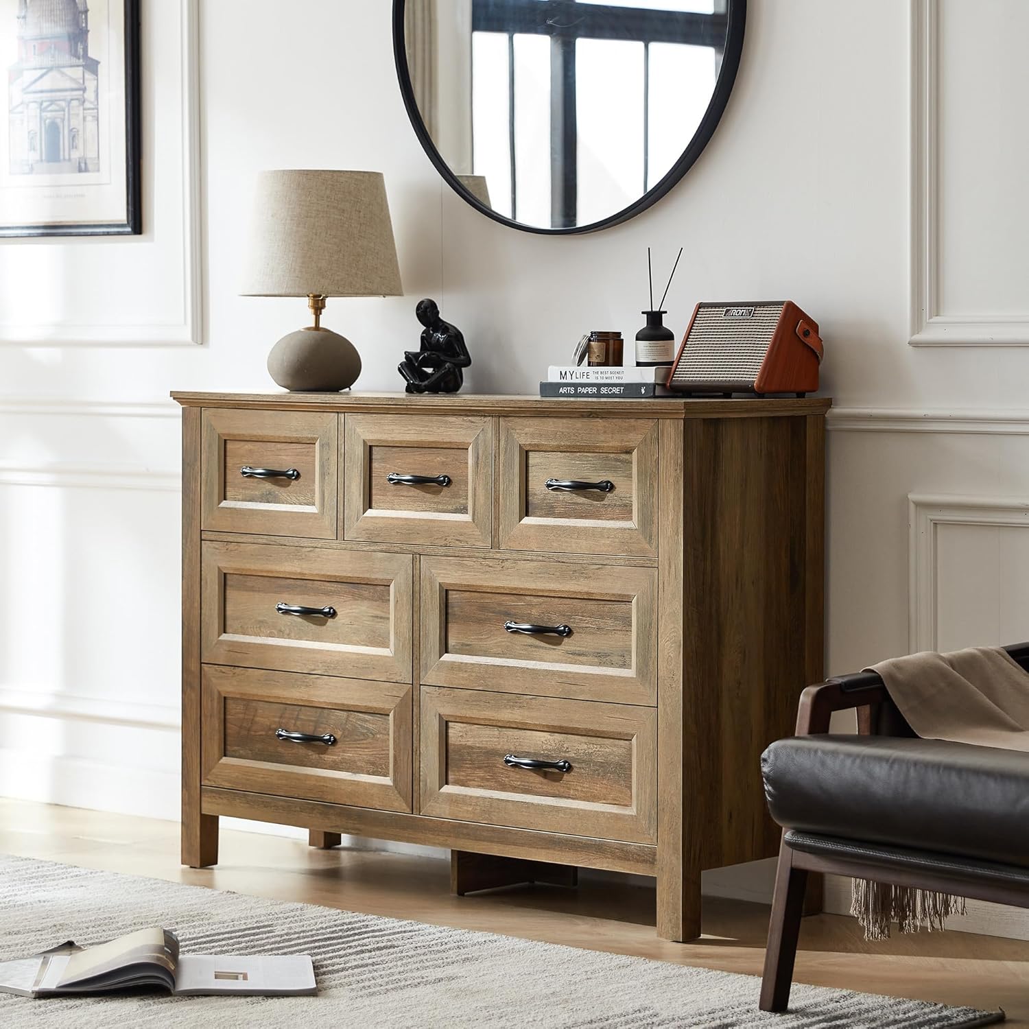 [Ample Storage Space] - With 7 Spacious Drawers, This Double Dresser Can Organize Anything From Shirts And Underwear. Place It In The Bedroom Or Anywhere You Like, It Can Be Used As A Tv Stand(Max. Load Capacity Of The Tabletop: 66Lbs).