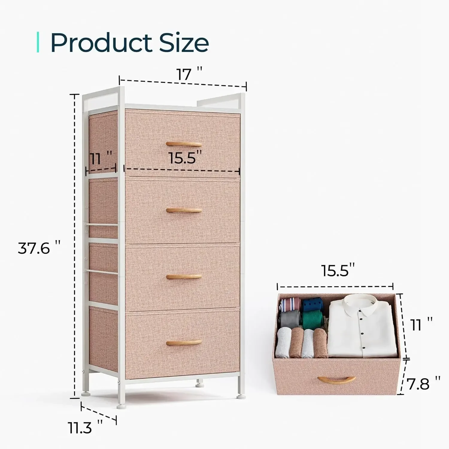 Dresser for Bedroom with 4 Drawers, Tall Dressers Storage Drawers, Tower Organizer Unit for Hallway, Entryway, Closets, Sturdy Steel Frame, Wood Top