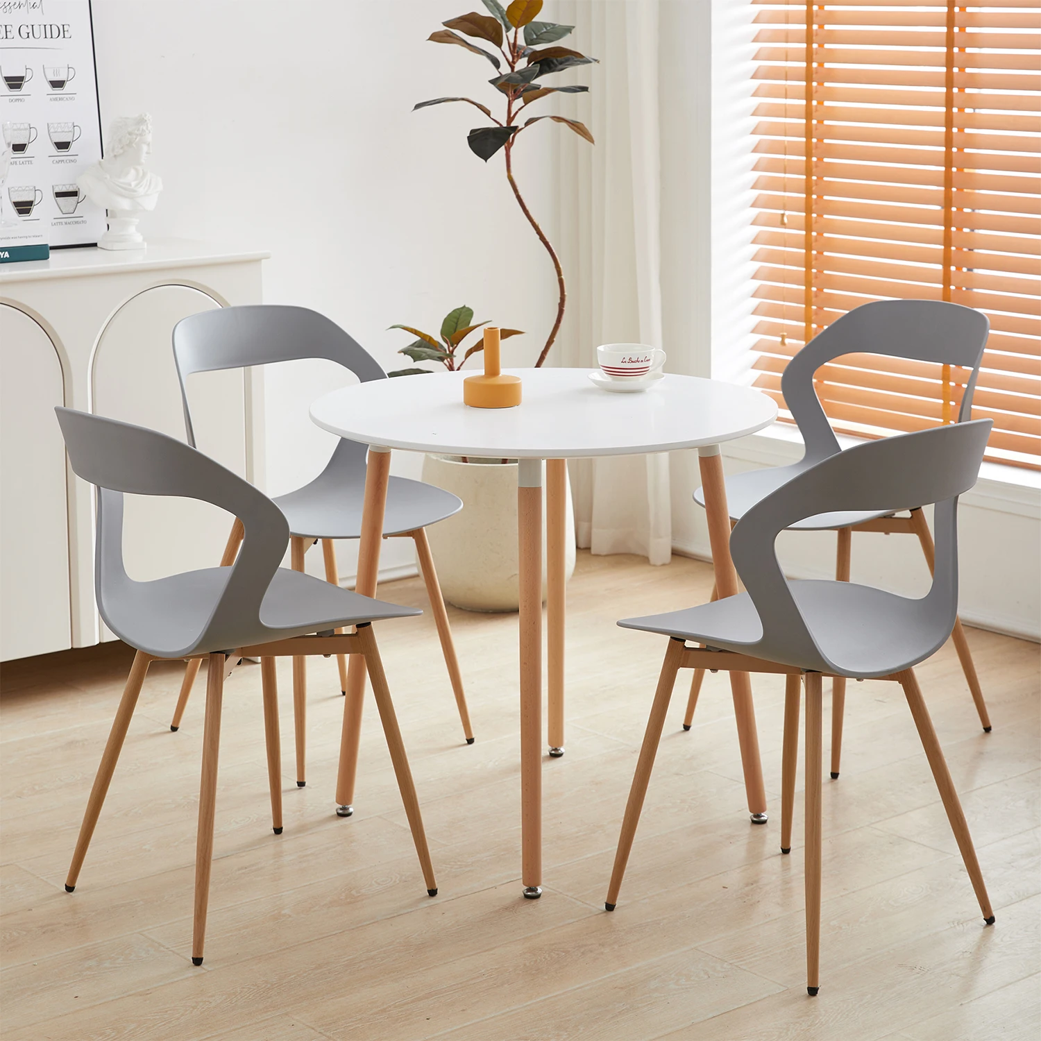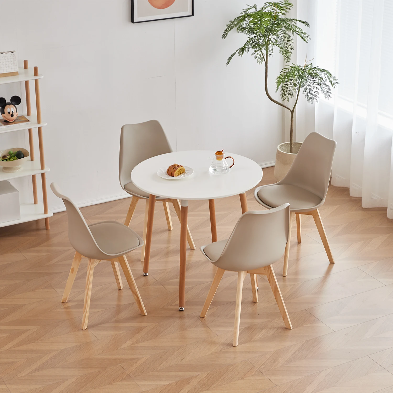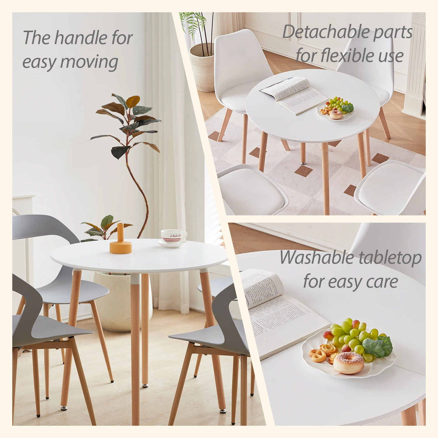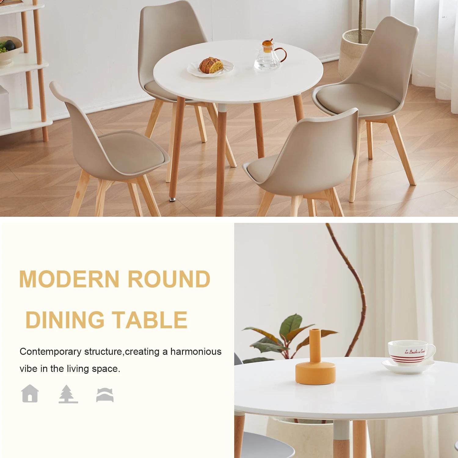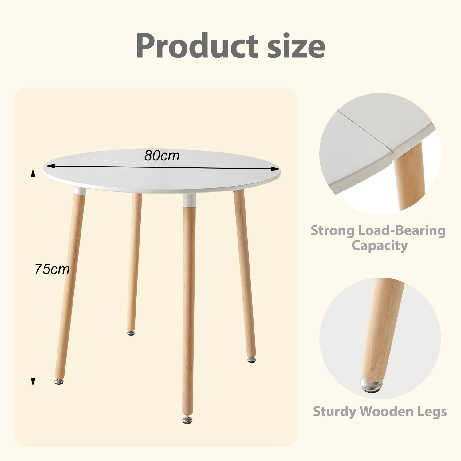 5: Equipped with an elegant white table top with wooden legs, it fits easily into any living environment