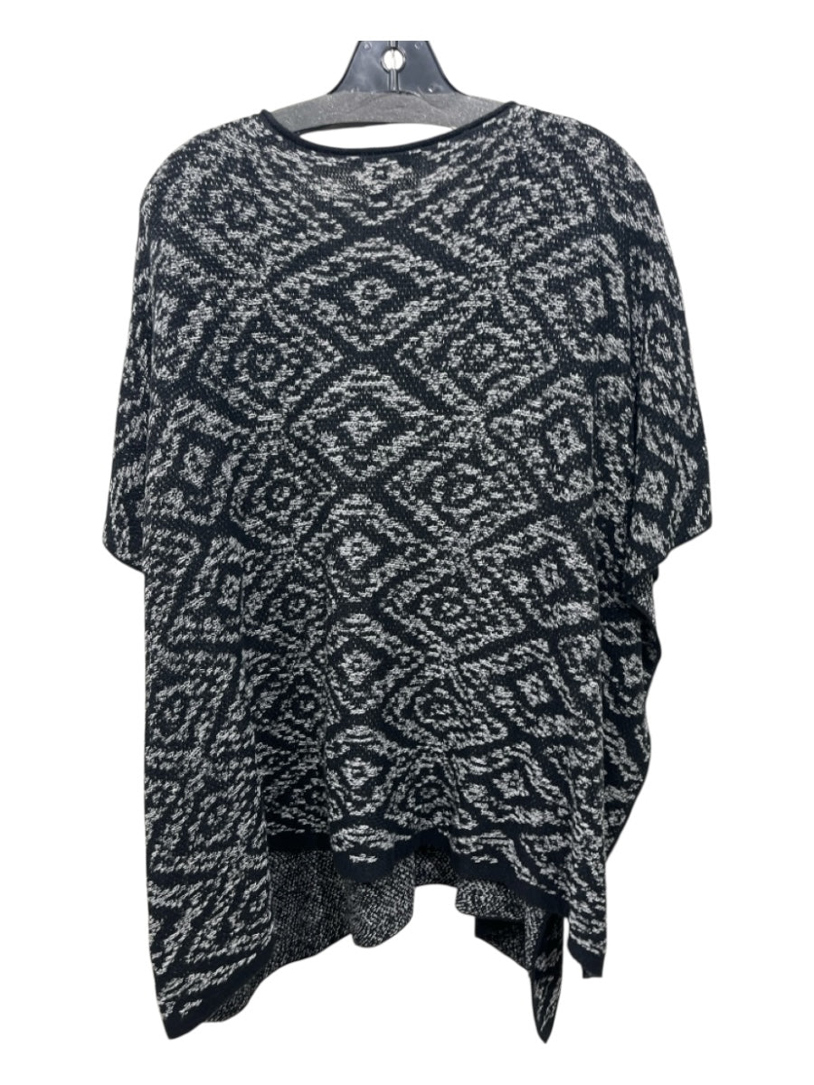 Eileen Fisher Size One Size Black & White Linen Knit Geometric Poncho Sweater