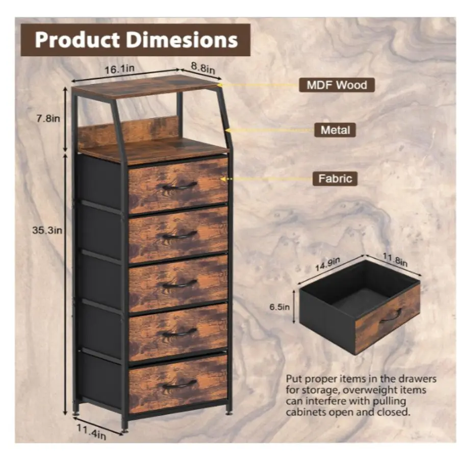 Fashionable 3/4/5 drawer dressing table, made of medium density fiberboard wood, storing appropriate items in drawers