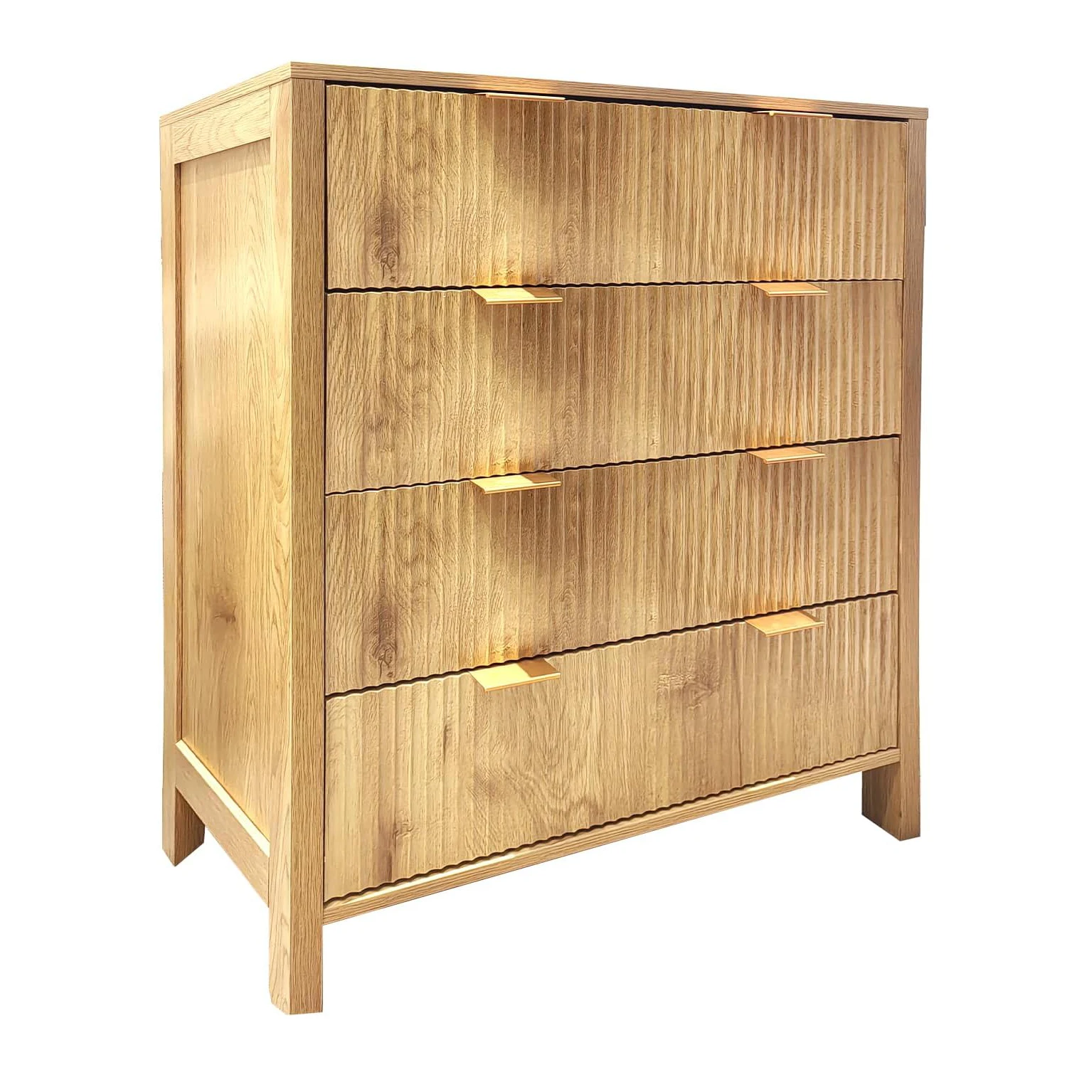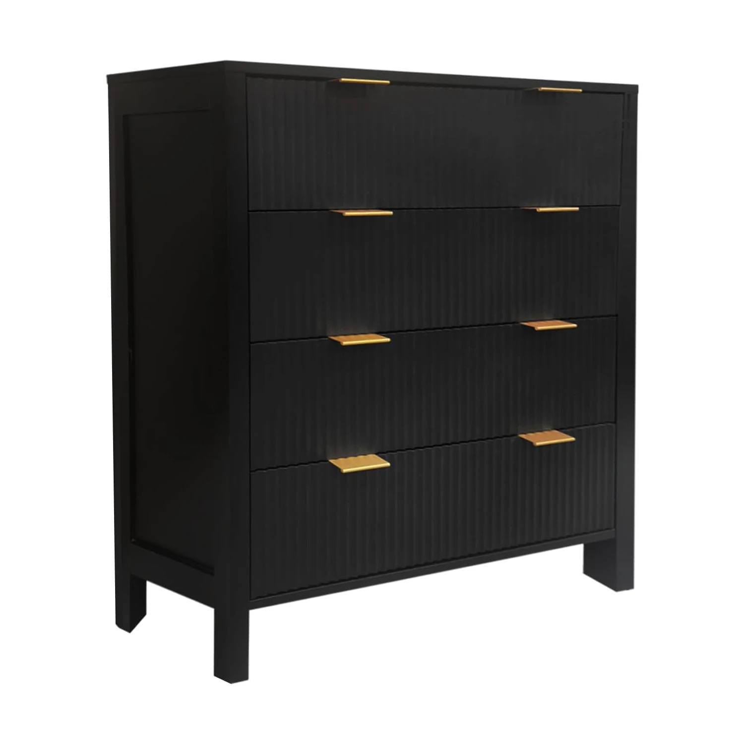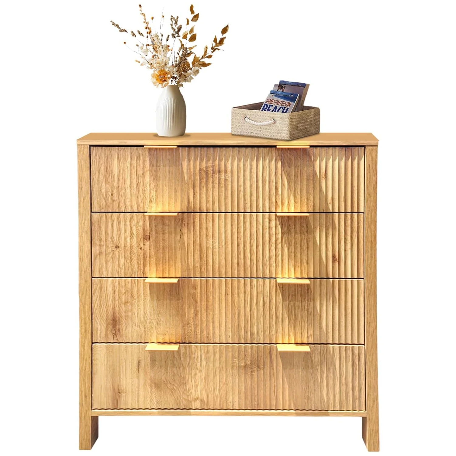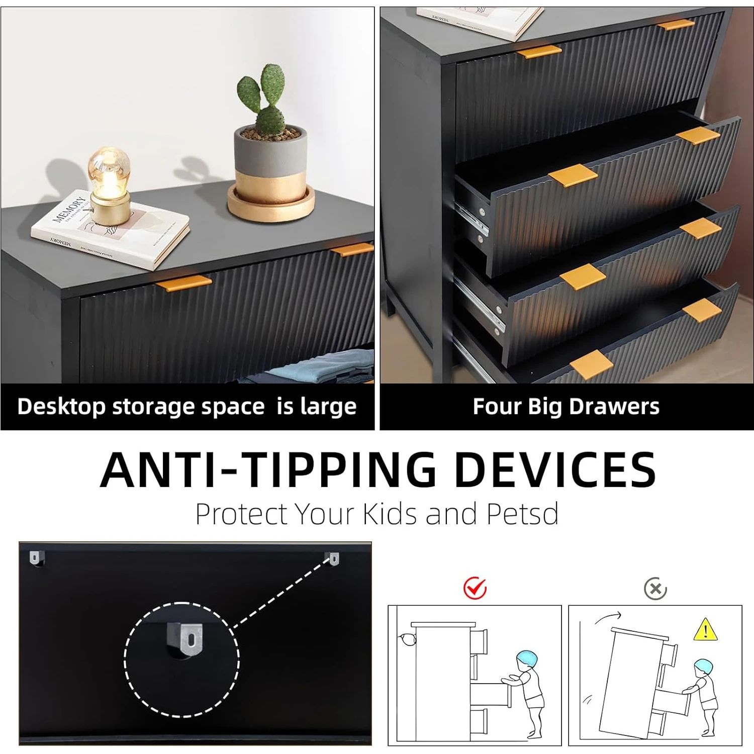 MODERN ELEGANCE WITH FLUTED DESIGN:This elegant wooden 4-drawer dresser combines timeless style with contemporary design, featuring fluted panels that bring a modern charm to any bedroom or living space. With dimensions of 29.92 x 15.55 x 36.22 inches, this piece enhances your decor with its stylish golden handles, making it a standout addition to your home. Ideal as a dresser for bedroom or accent piece, it embodies a balance of modern sophistication and practical functionality.