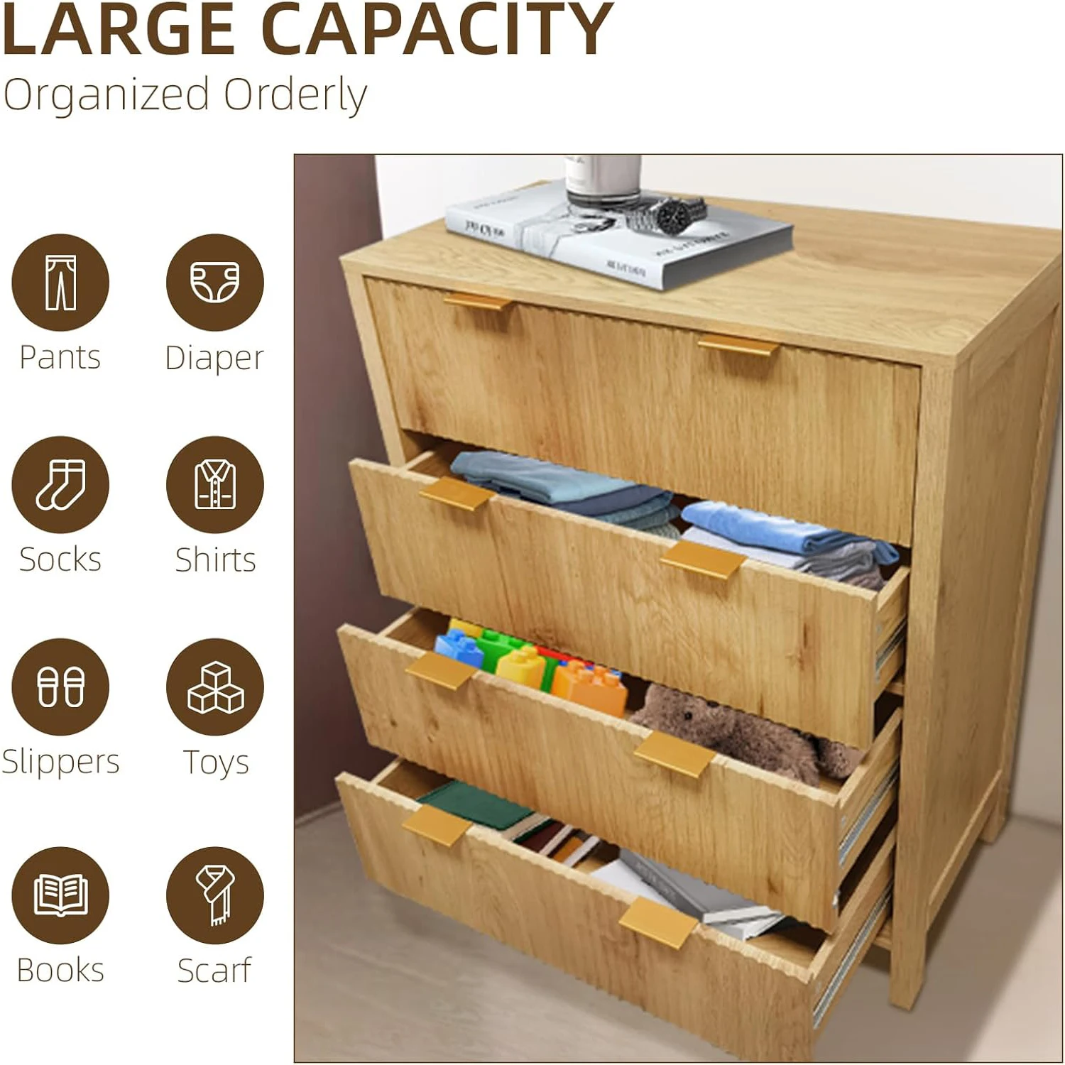 GENEROUS STORAGE SOLUTION FOR YOUR HOME:Equipped with four spacious drawers, this wood dresser offers ample room for organizing clothes, accessories, and essentials. The smooth, noise-free metal slides ensure effortless opening and closing, making it easy to access your items daily. The design guarantees a perfect balance of form and function, helping keep your space tidy and stylish.