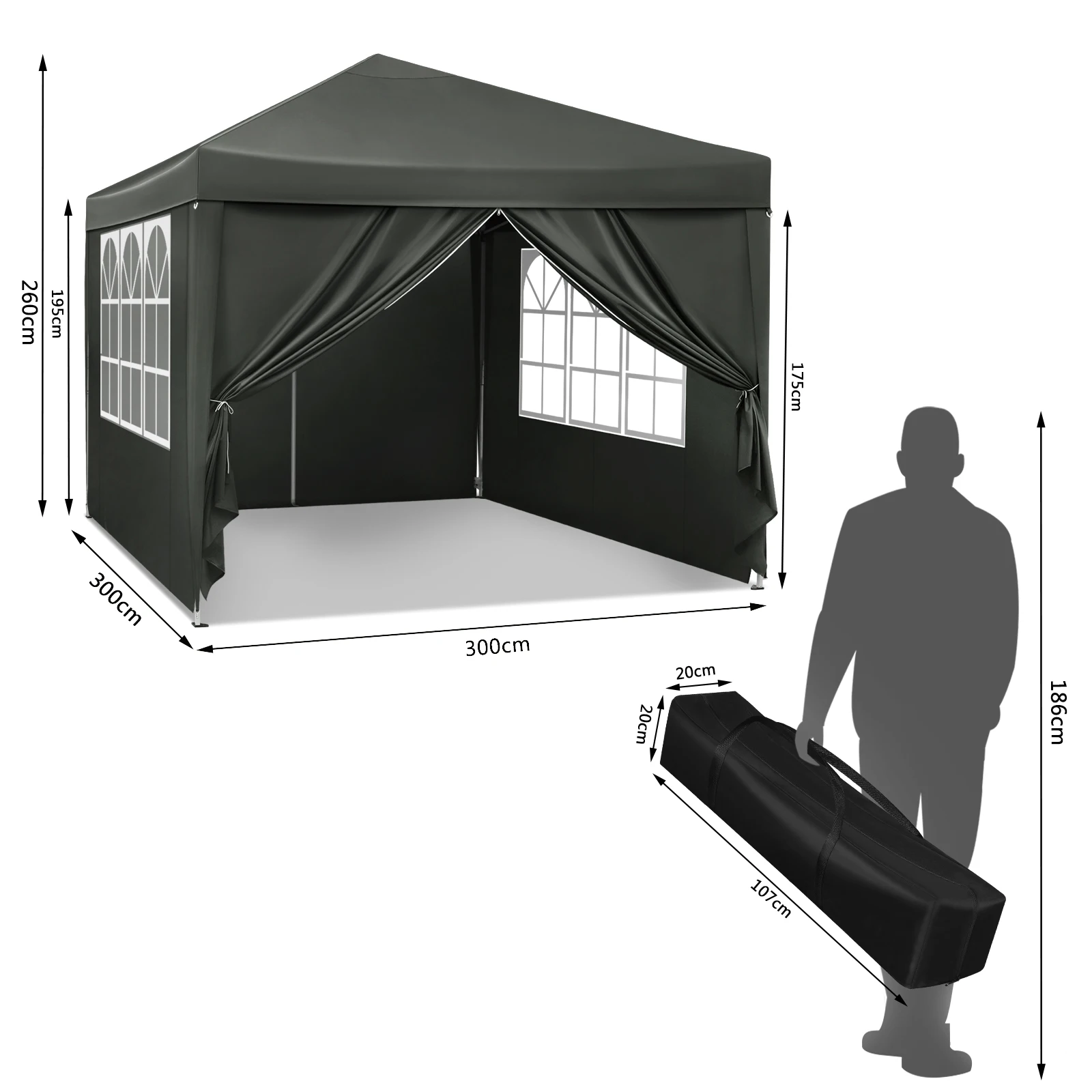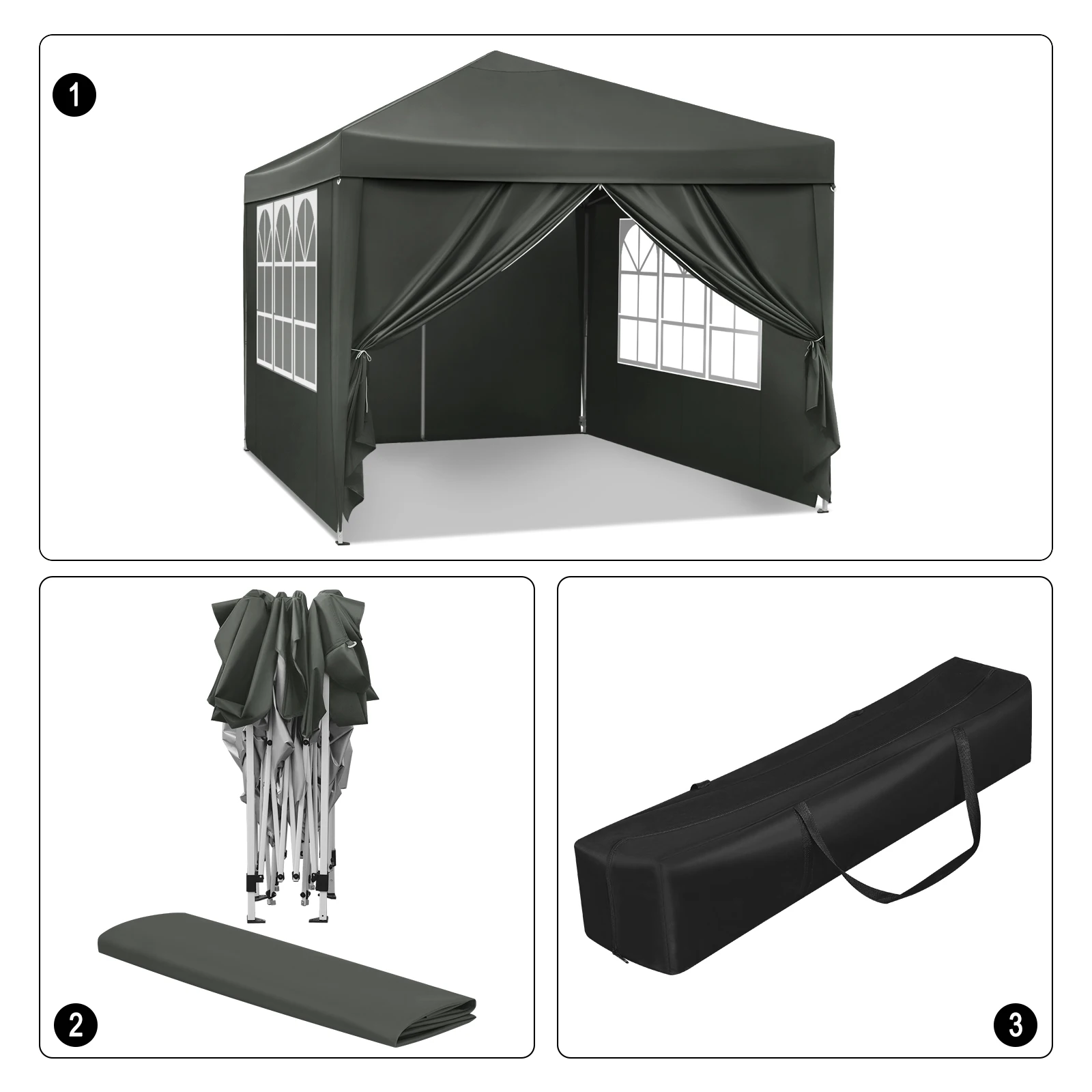 Easy to set up and store: thanks to the folding system, the folding gazebo can be installed quickly. When not in use, you can fold it up and store it in the included carry bag, which saves space and facilitates transport