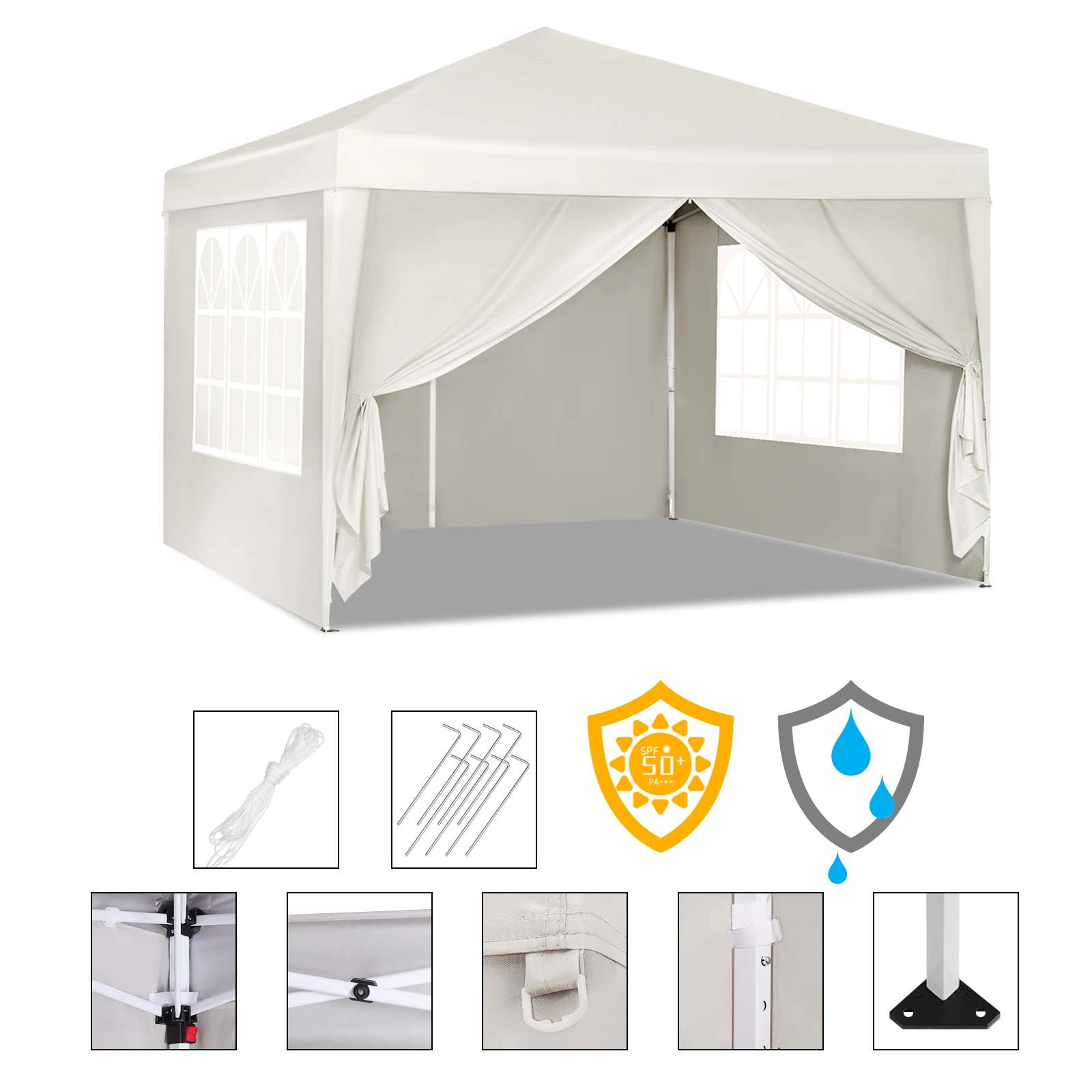 HEIGHT ADJUSTABLE: The party tent can be adjusted between 250, 254, 258 cm, which is flexible and meets different needs. The side walls are easy to roll up and close. 2 zipped doors are easy to use