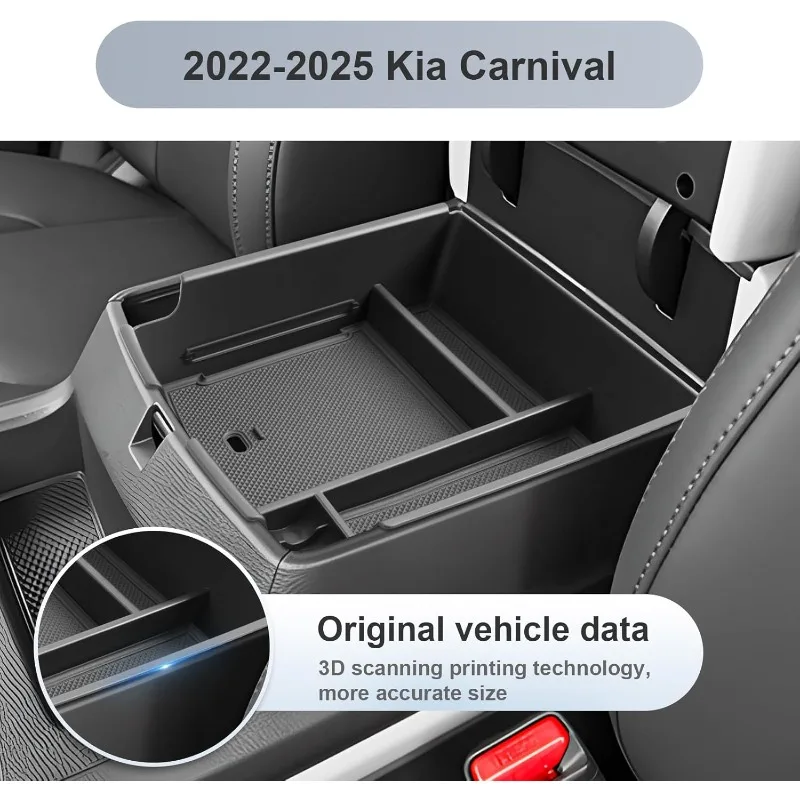 FITMENT WITH 2025+ Kia Carnival (LX/LXS/EX/SX/SX Prestige) Center Console Organizer, Add the 2025 Carnival storage space and keep it neat, keep your items within reach.