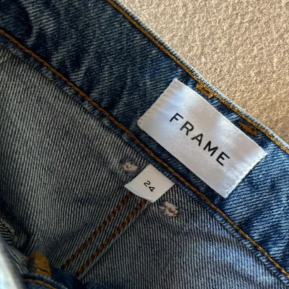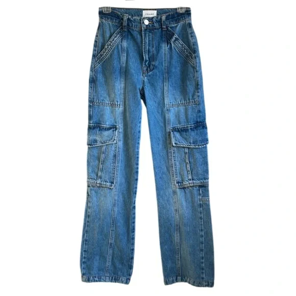 Introducing the 'FRAME Denim Primetime High-Rise Utility Straight Jean', a must-have addition to your wardrobe. This versatile piece epitomizes the brand's signature blend of dressed-up casual with European influences.Crafted with utmost precision, these high-rise utility straight jeans feature thoughtfully designed elements that elevate your style. Sporting belt loops, cargo pockets, and fading details, the Primetime jean is both functional and fashionable. The four-pocket styling ensures ample space to keep your essentials close at hand.Nice pre-owned condition See photos for measurementsHeavy weight jeans
