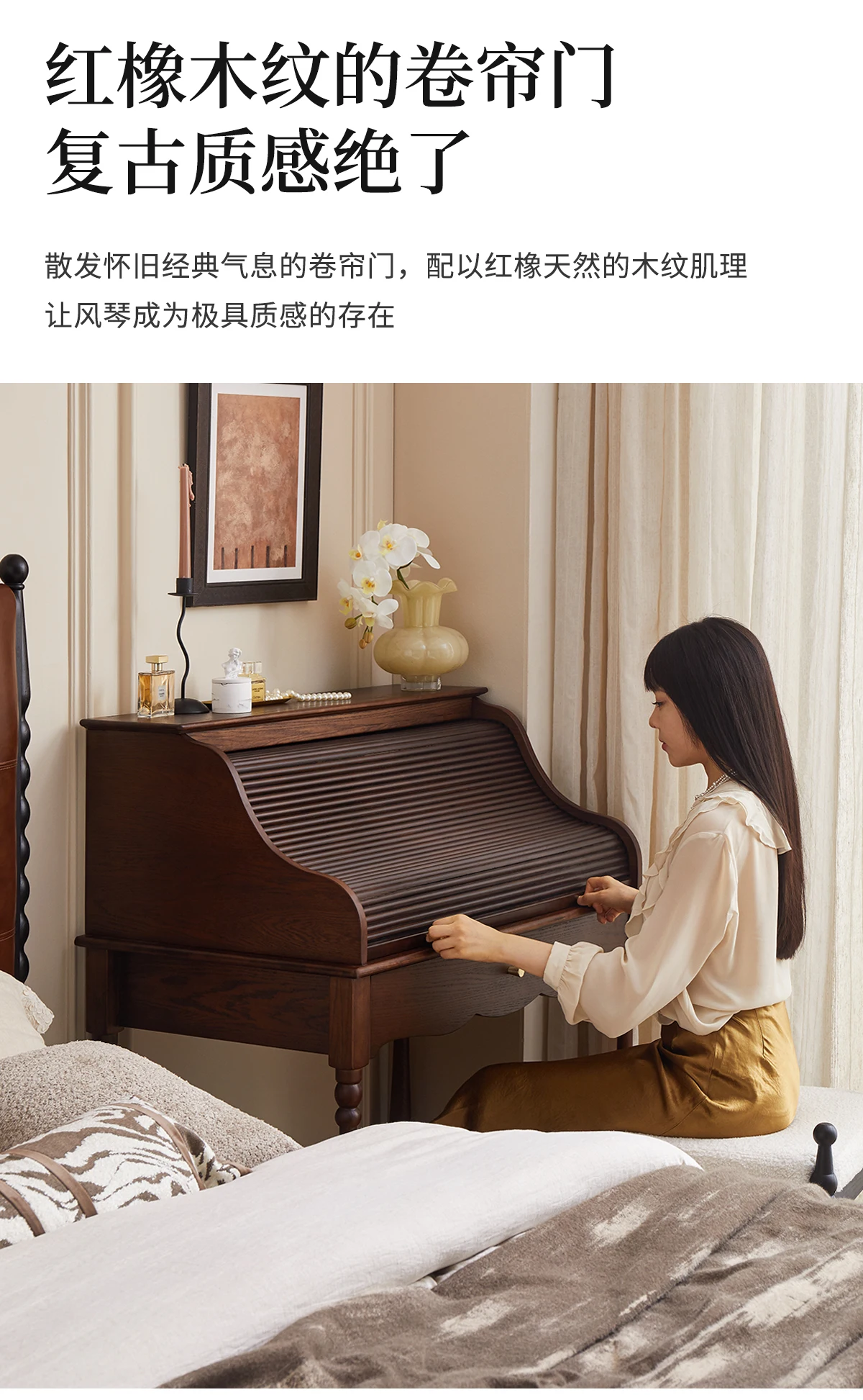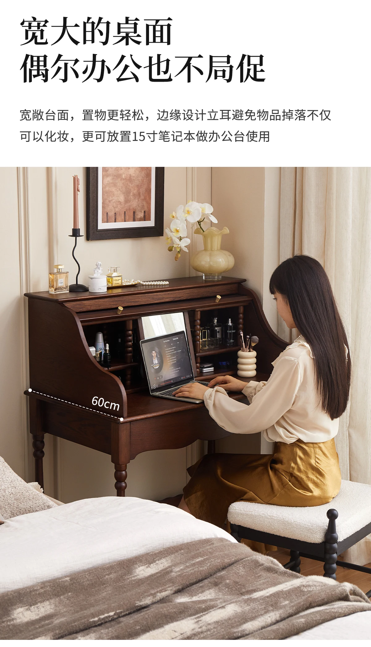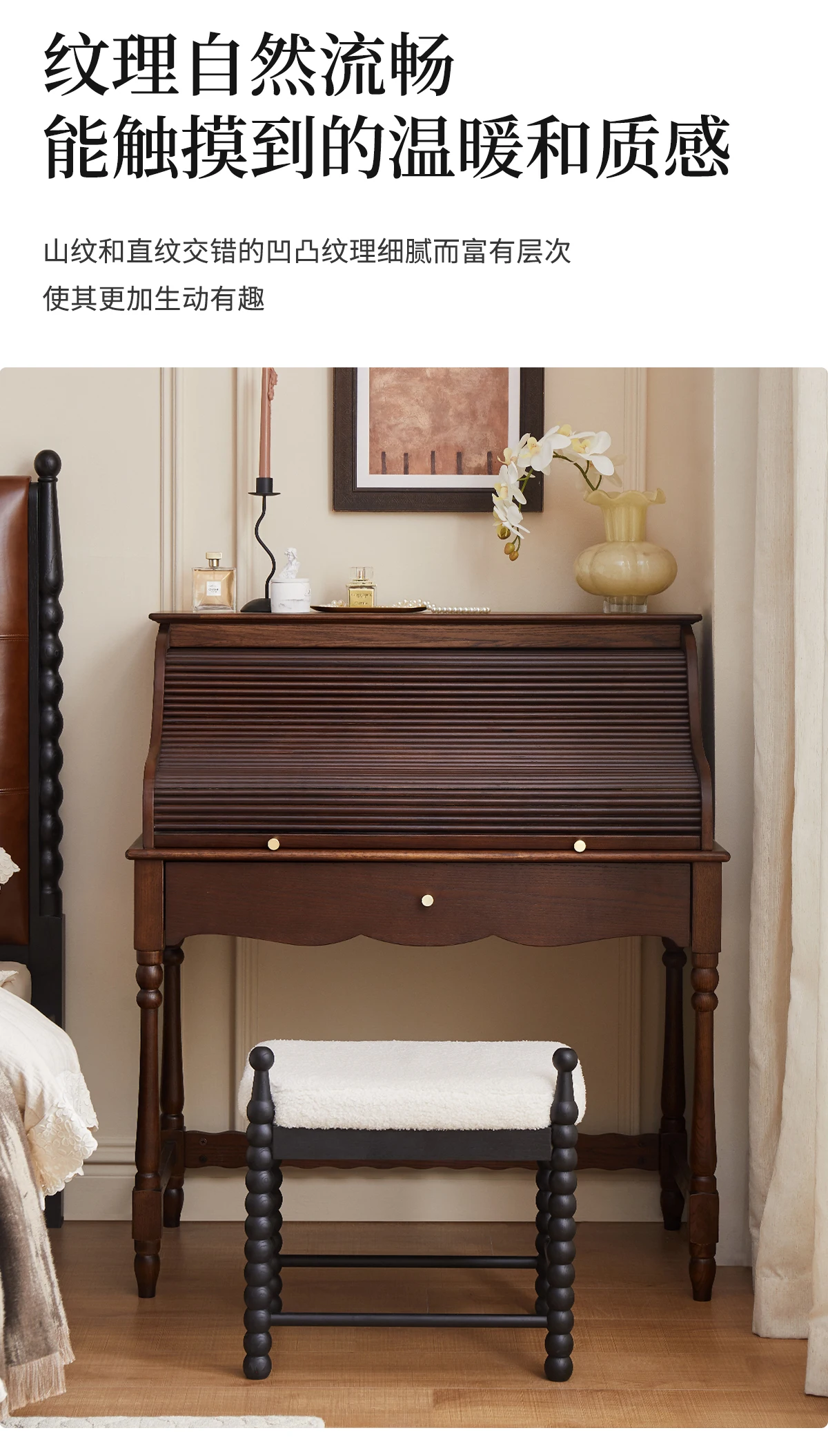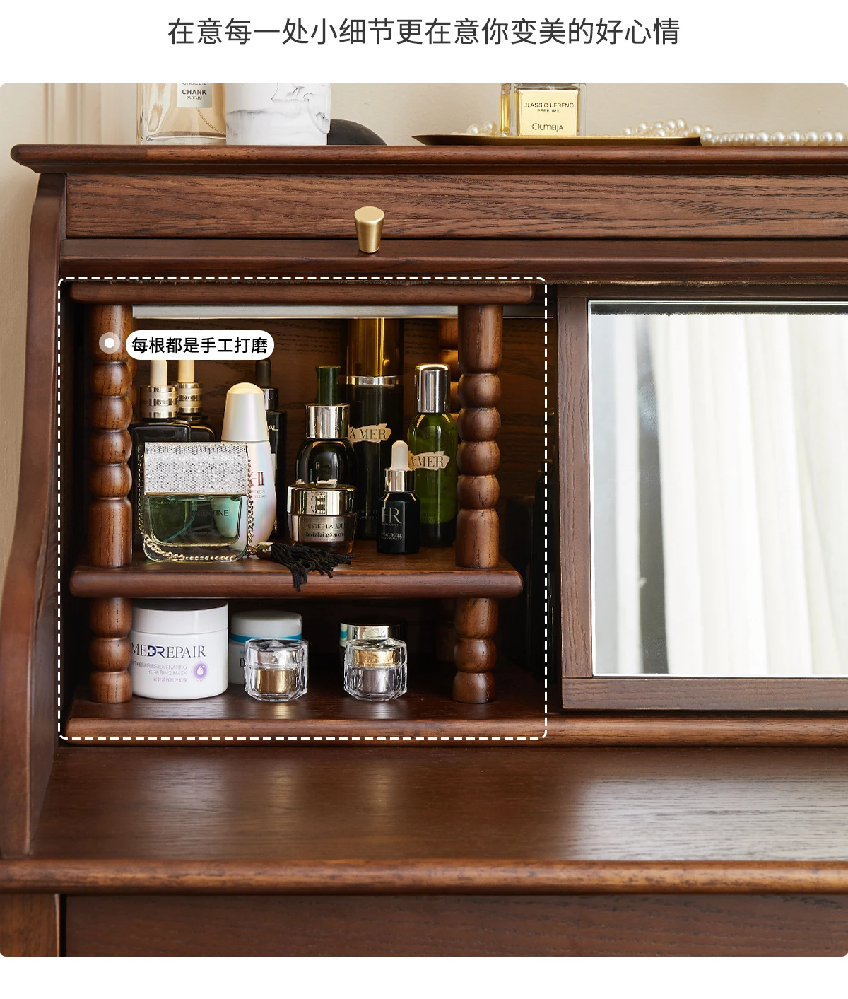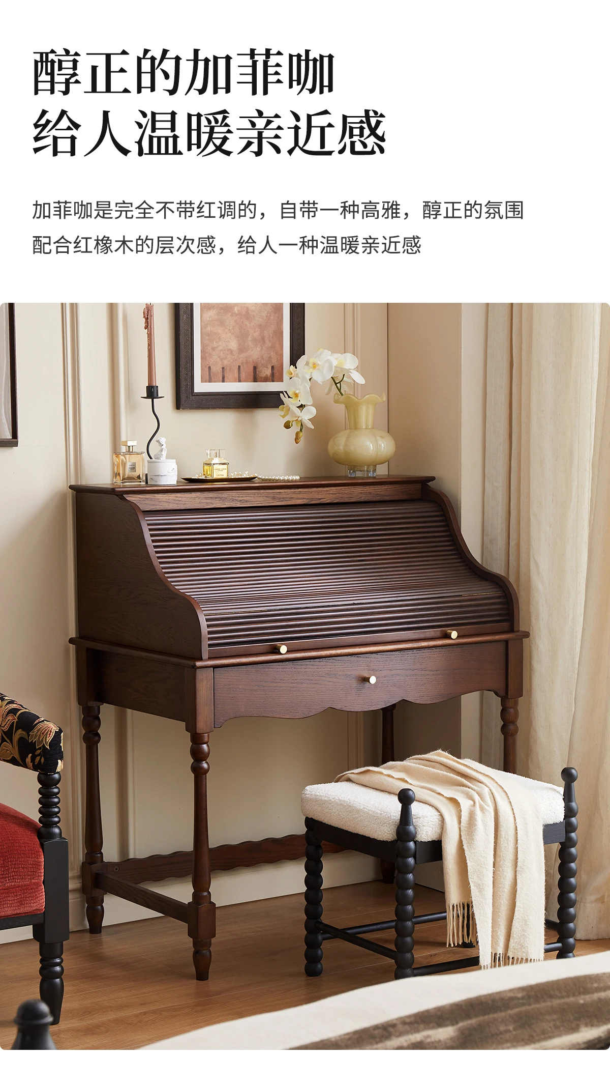 French retro roller shutter dresser medium antique solid wood makeup table storage integrated bedroom small apartment