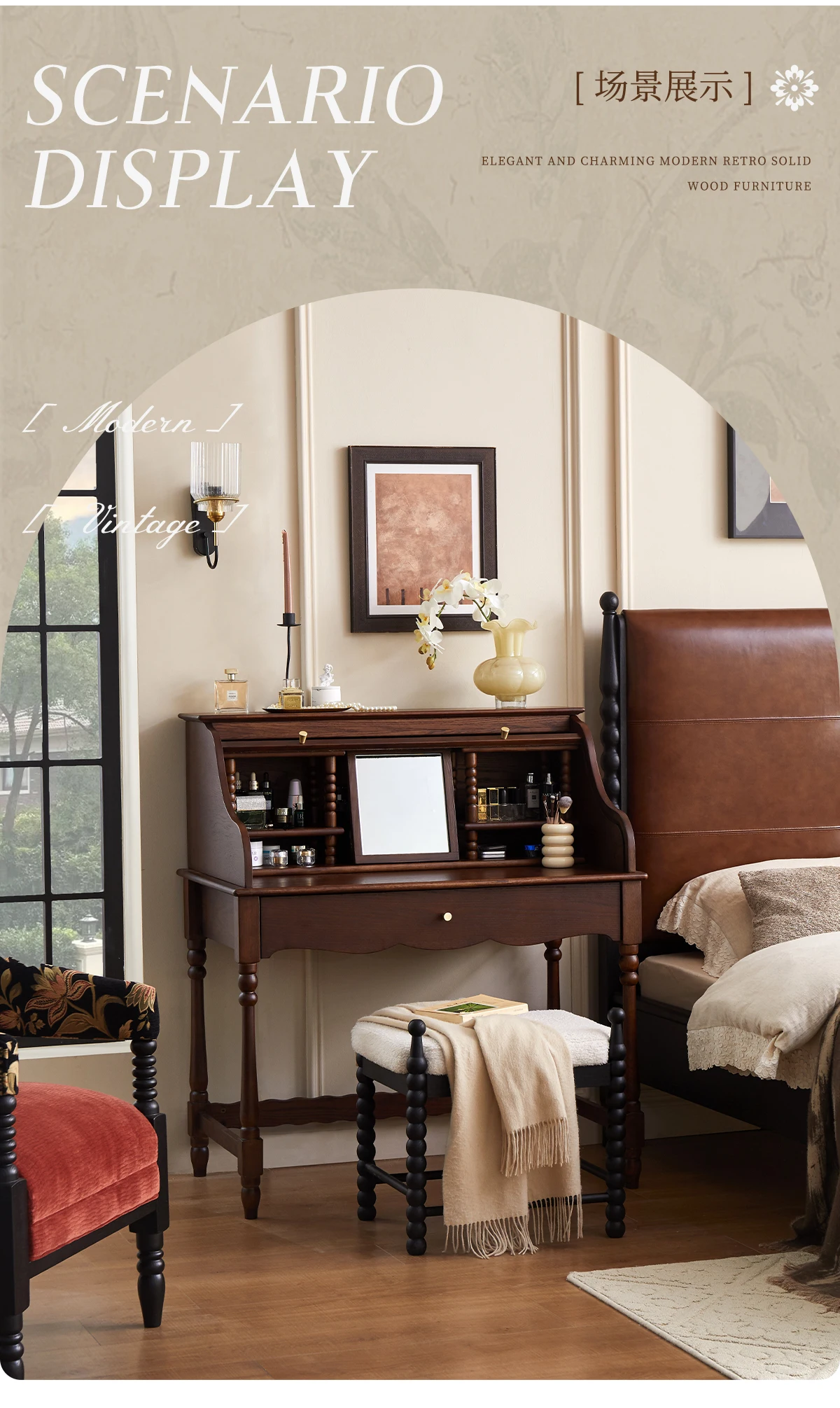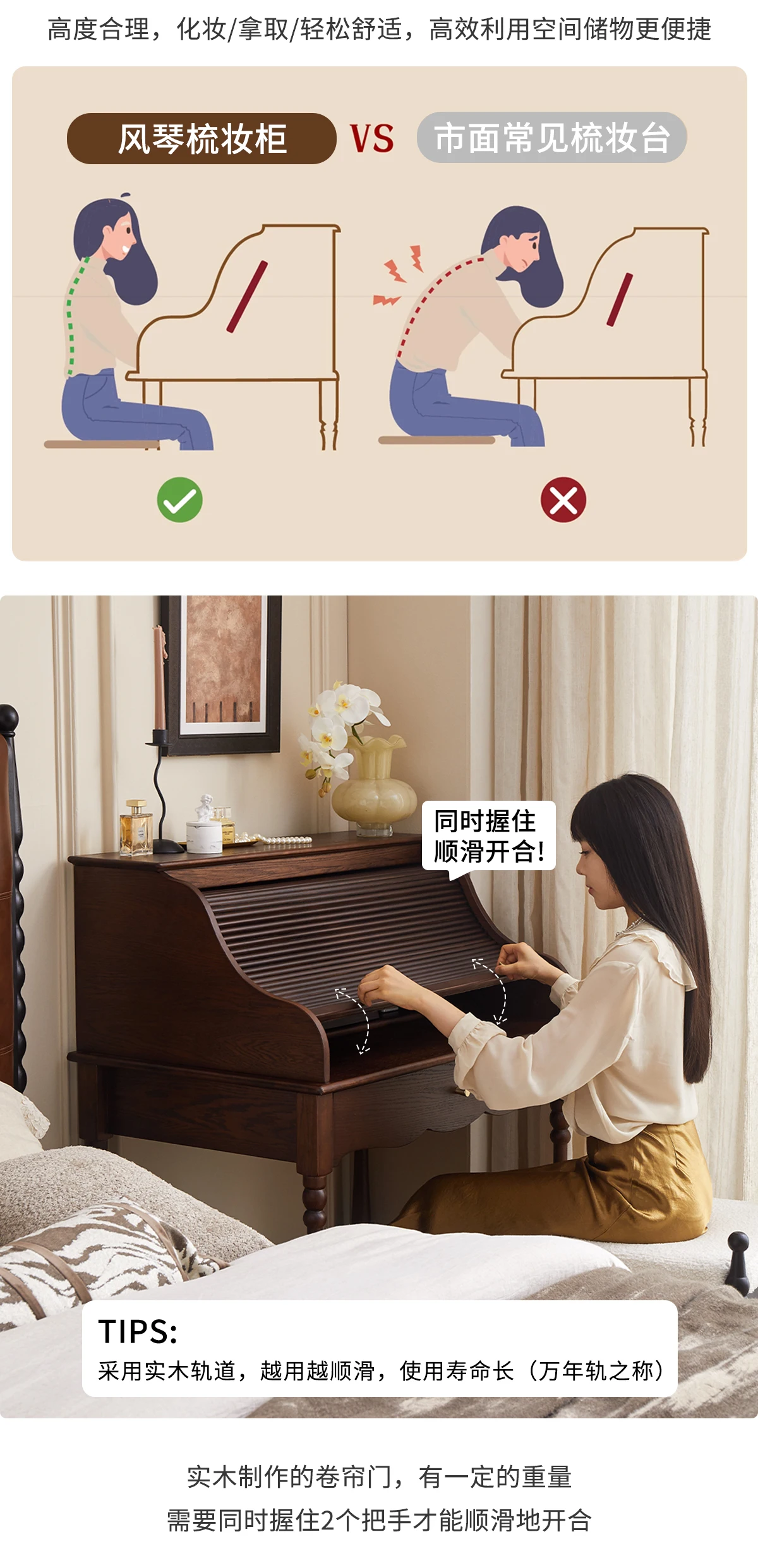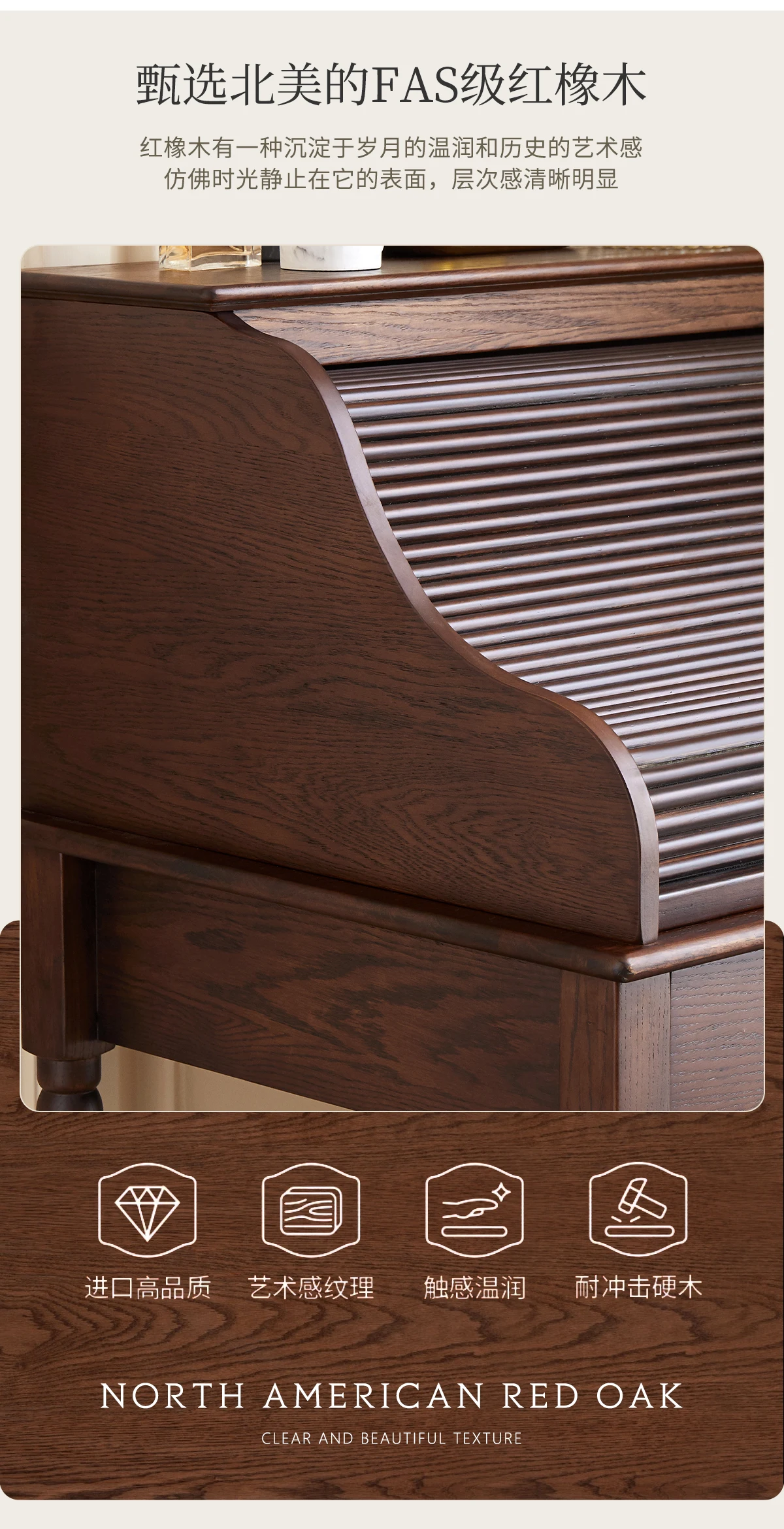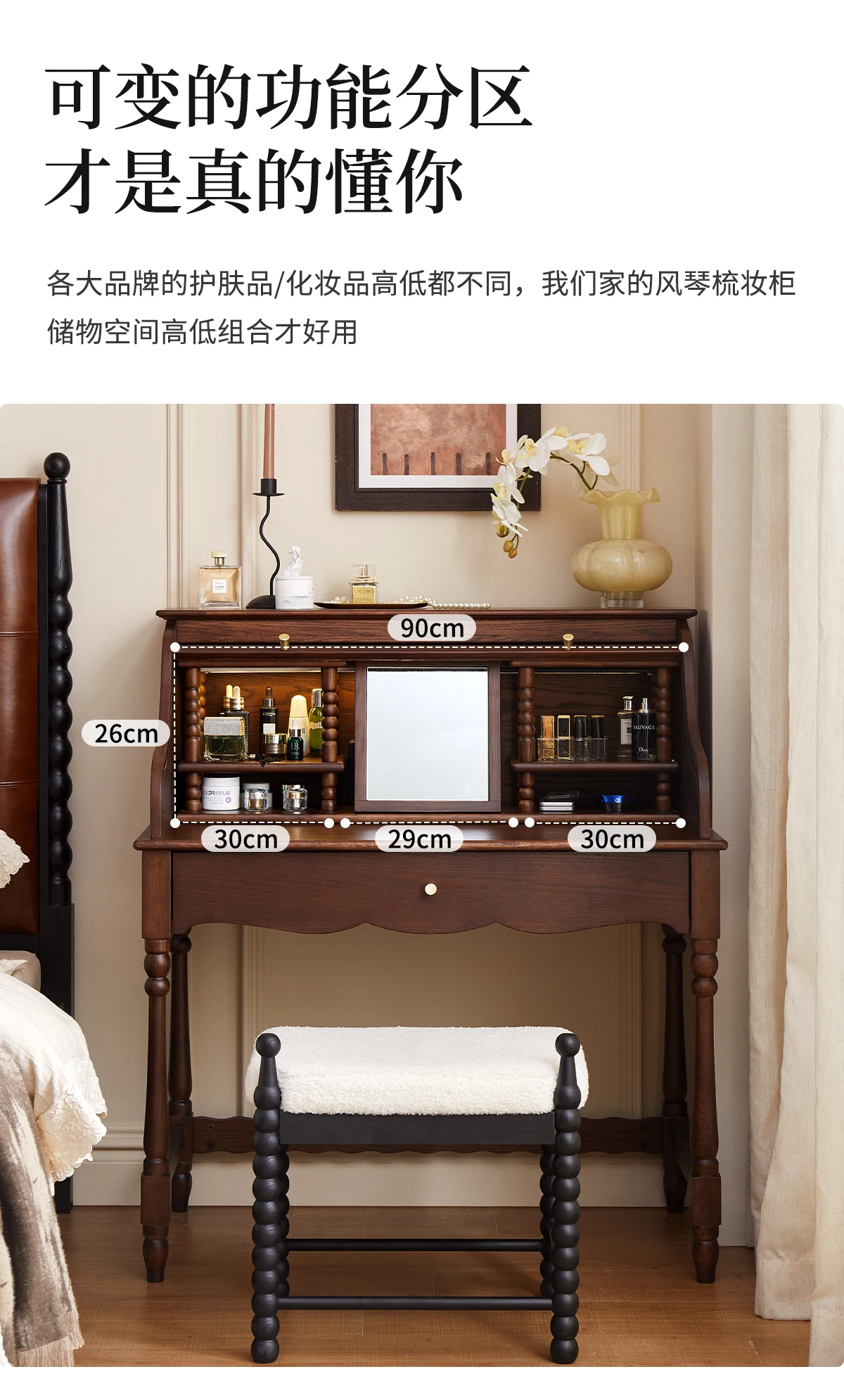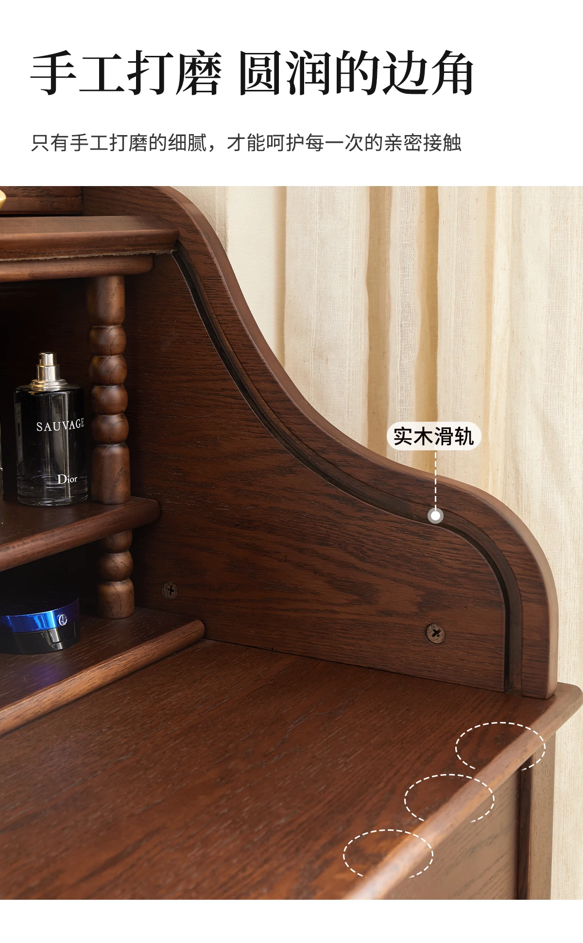 French retro roller shutter dresser medium antique solid wood makeup table storage integrated bedroom small apartment