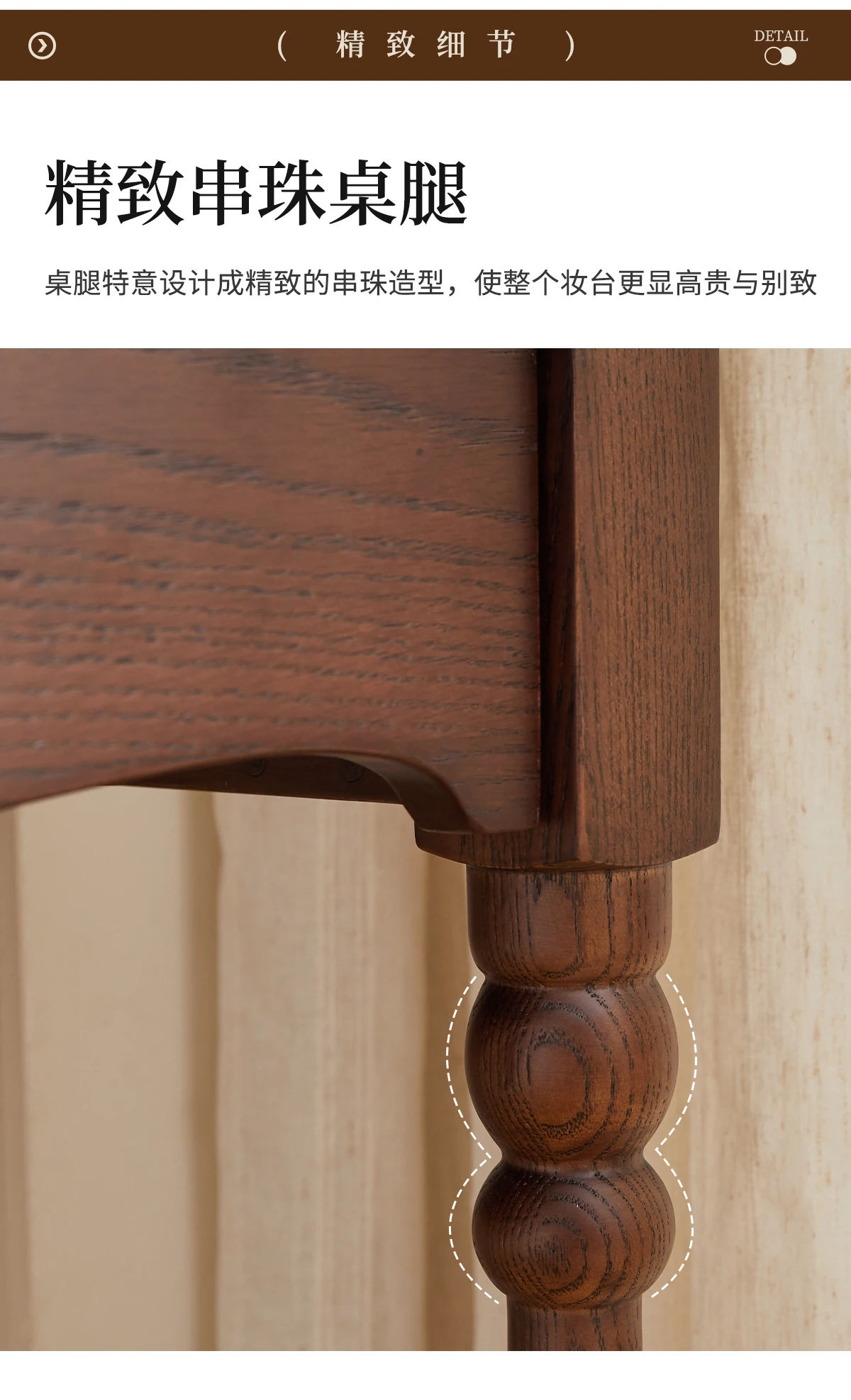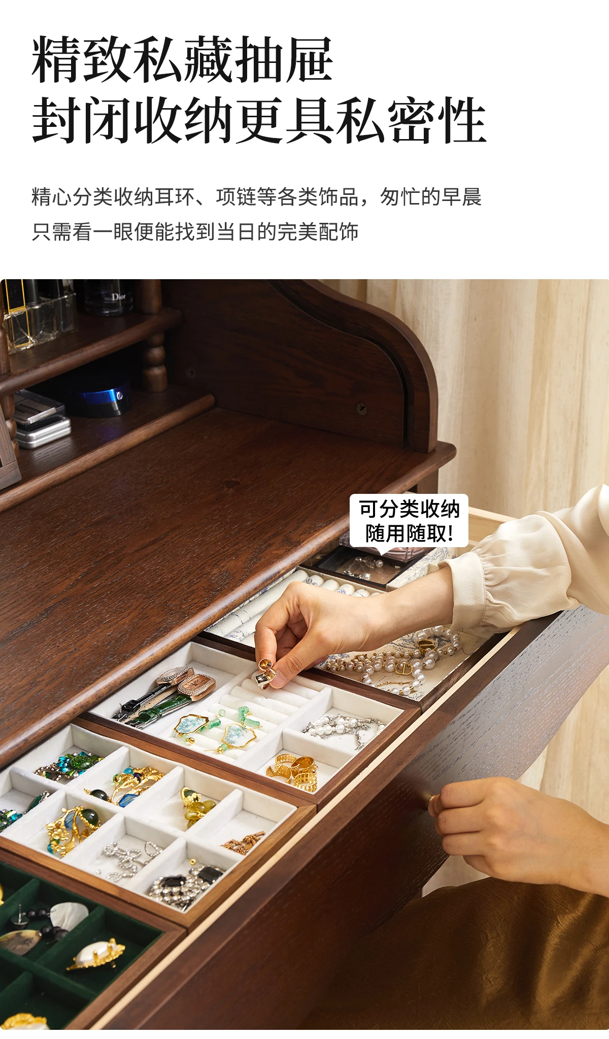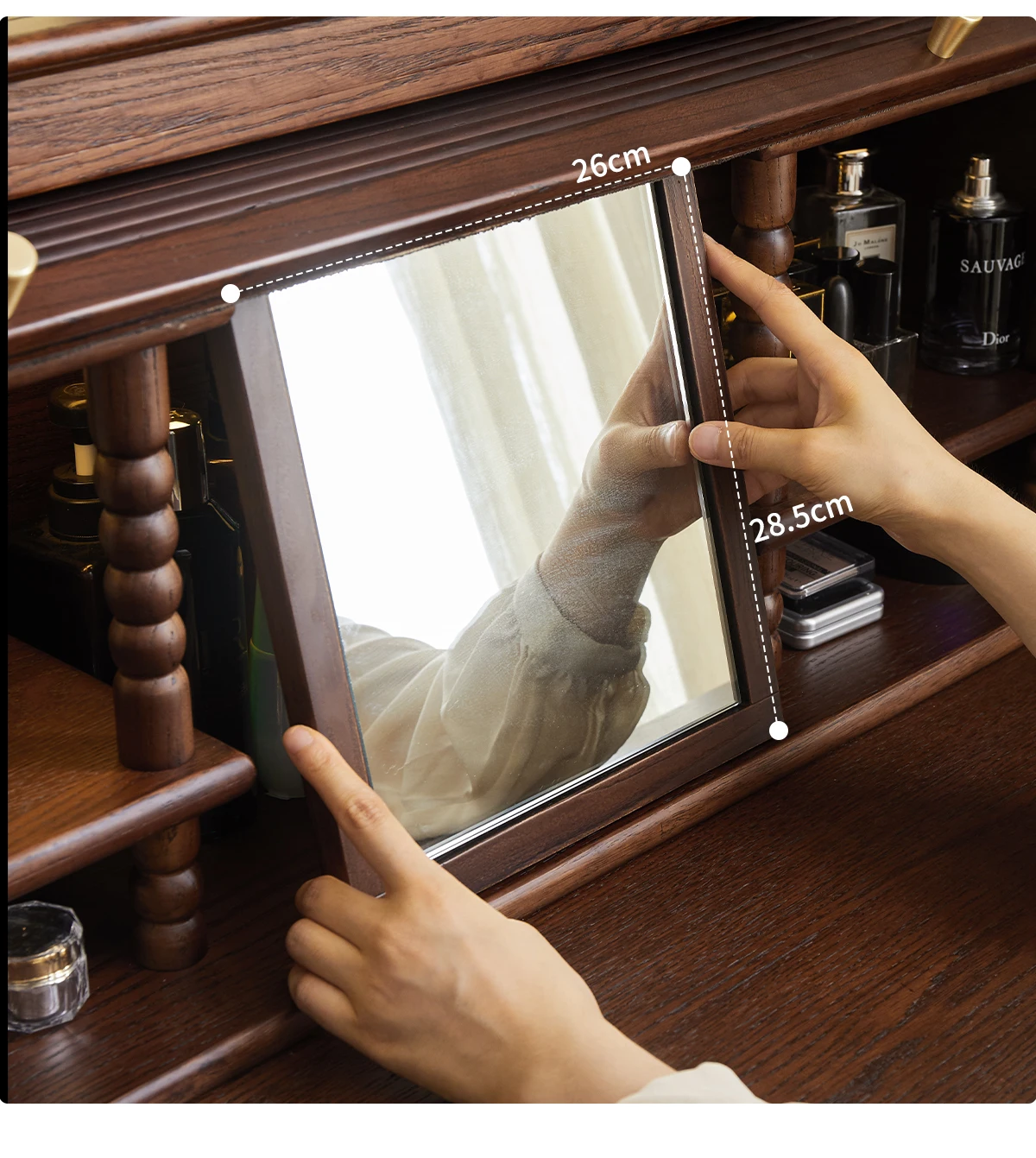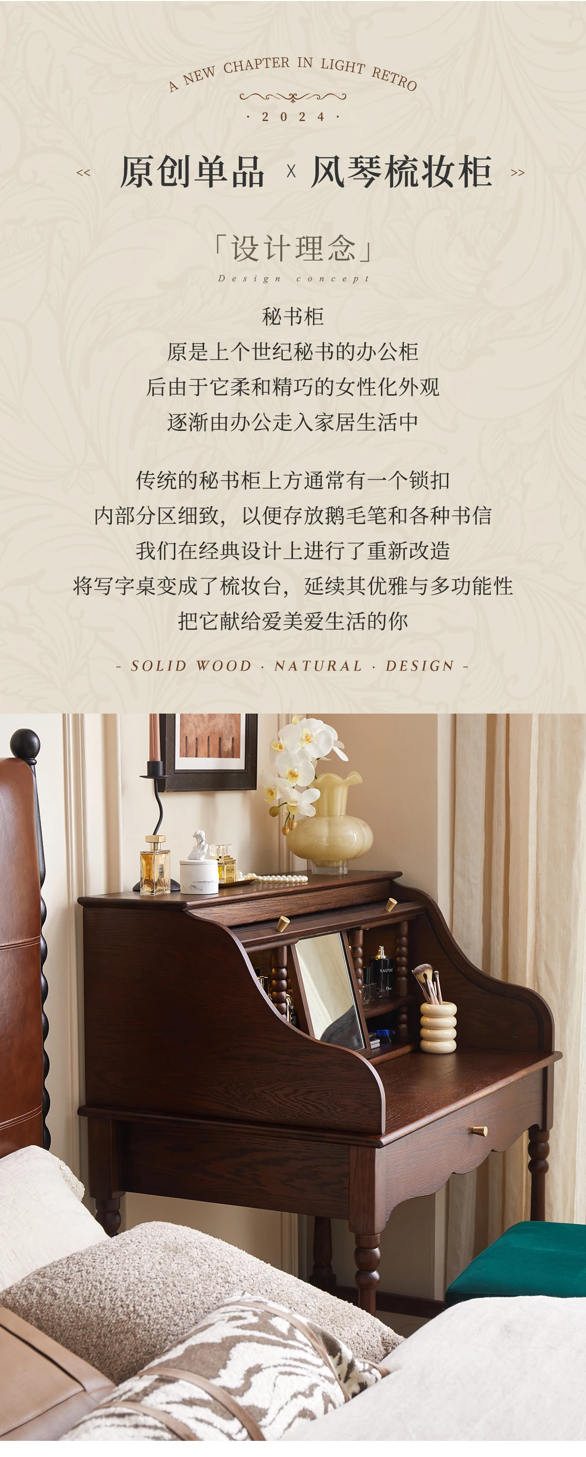 French retro roller shutter dresser medium antique solid wood makeup table storage integrated bedroom small apartment