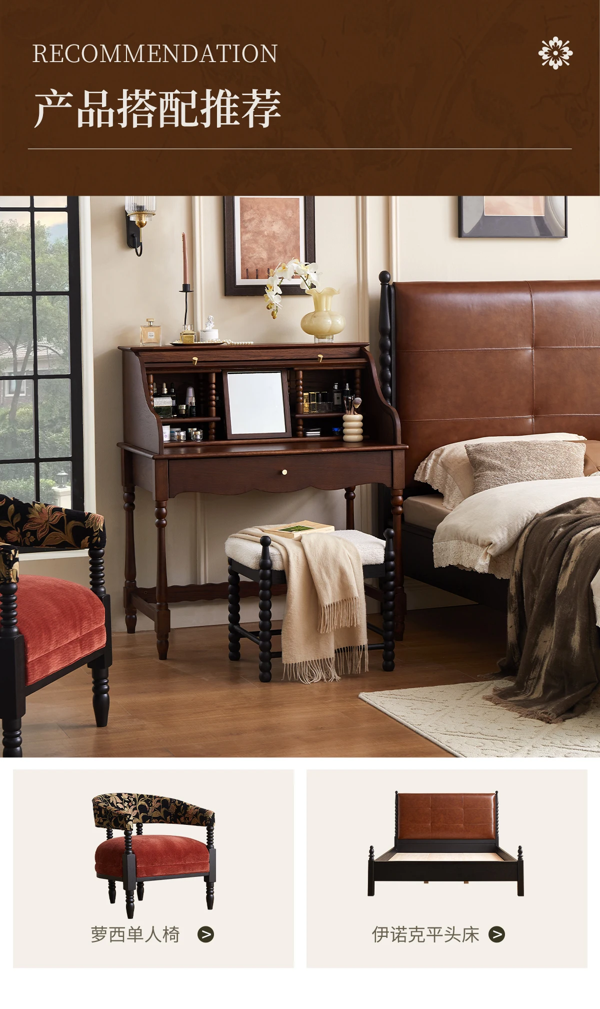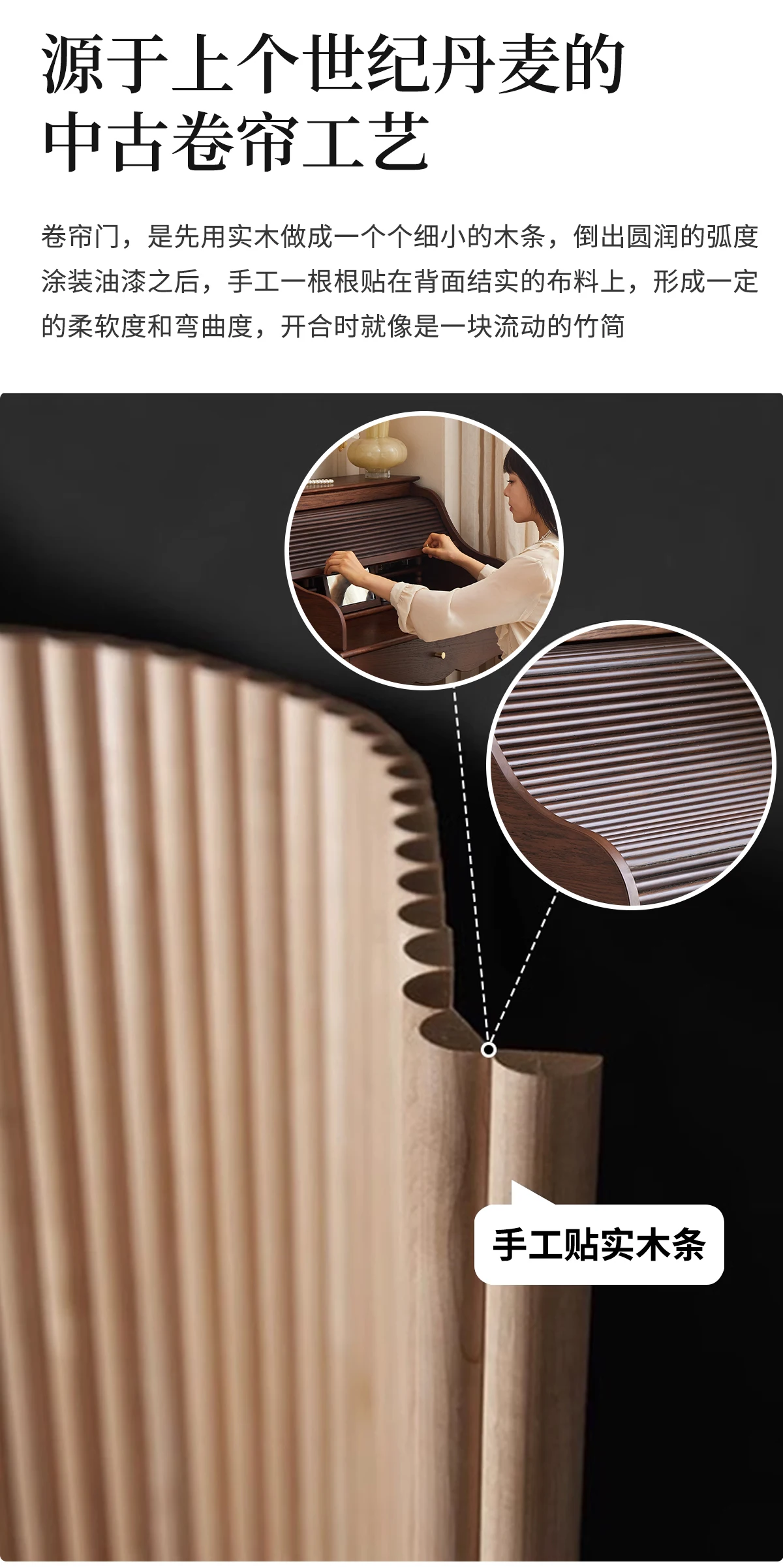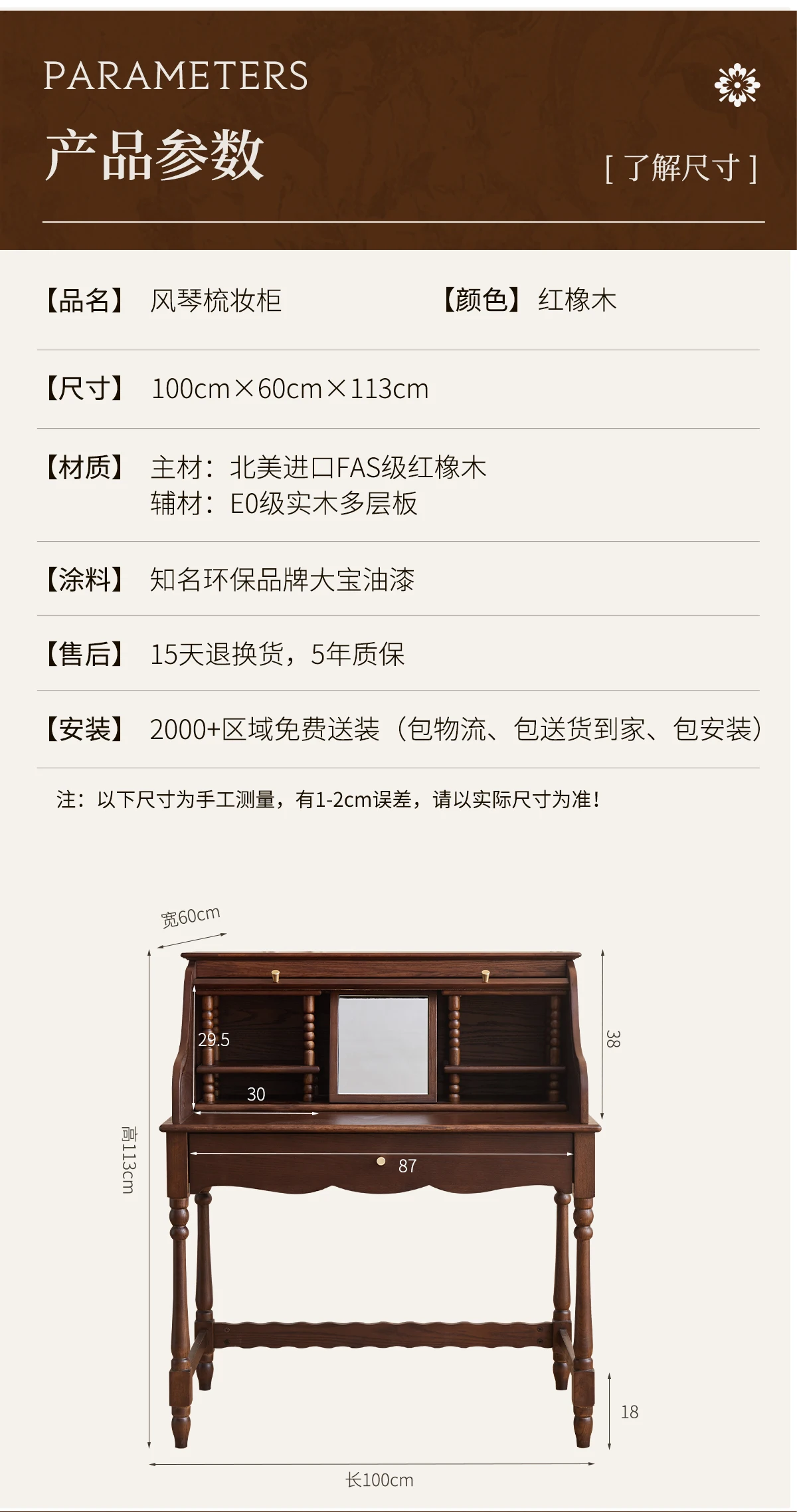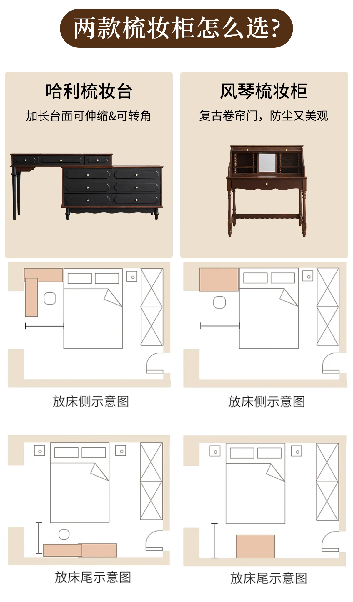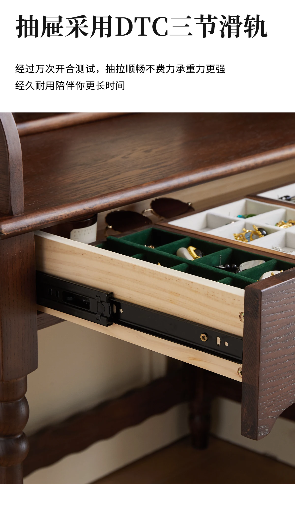 French retro roller shutter dresser medium antique solid wood makeup table storage integrated bedroom small apartment