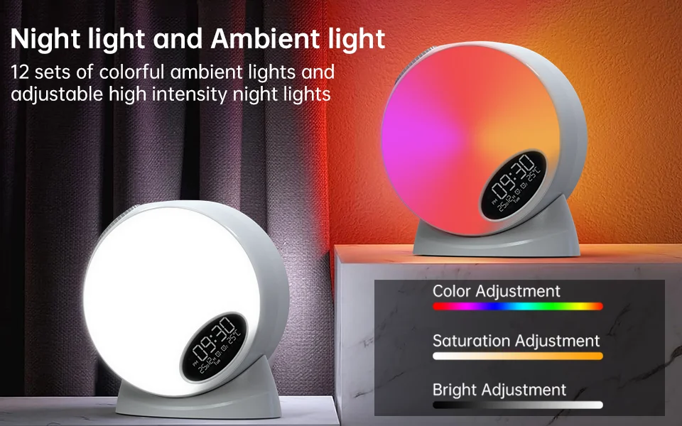 12 sets of colorful ambient lights and adjustable high intensity night lights
