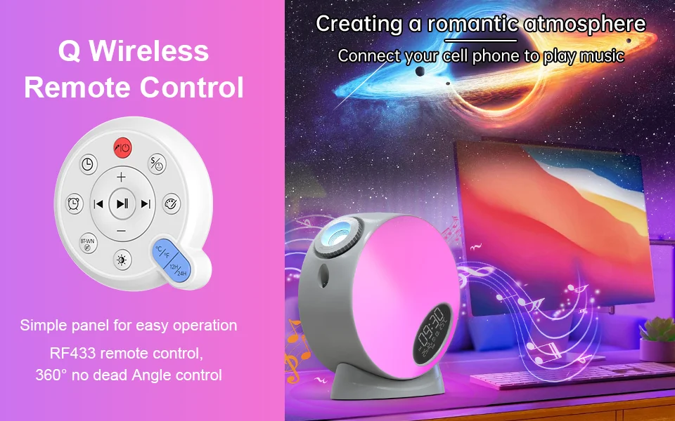 【Versatile Design &Soothing White Noise】 With a timer function and adjustable projection angle, this projector can be used as a night light, ceiling decor, or living room ambiance.The projector offers a white noise feature to create a calming atmosphere for sleep or relaxation