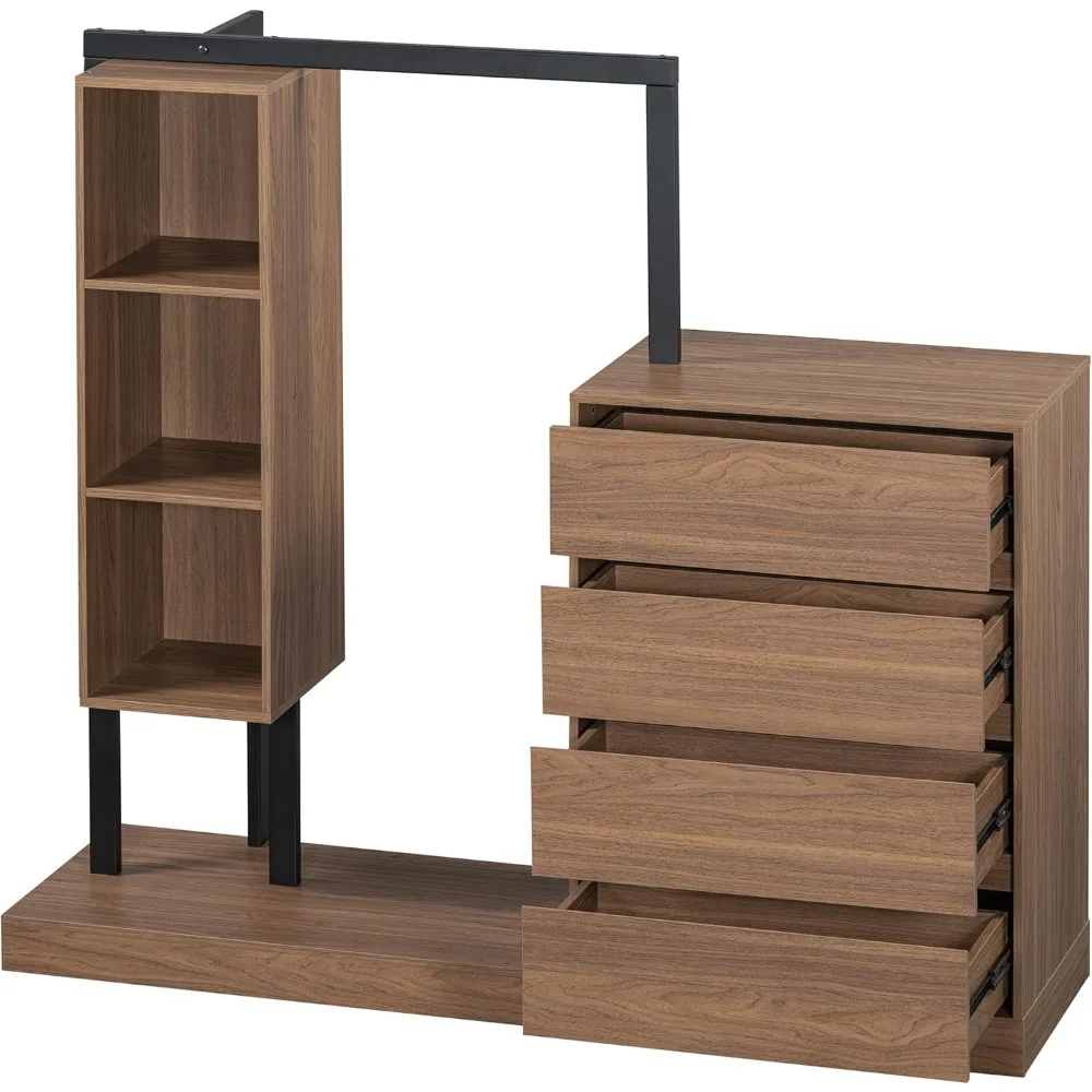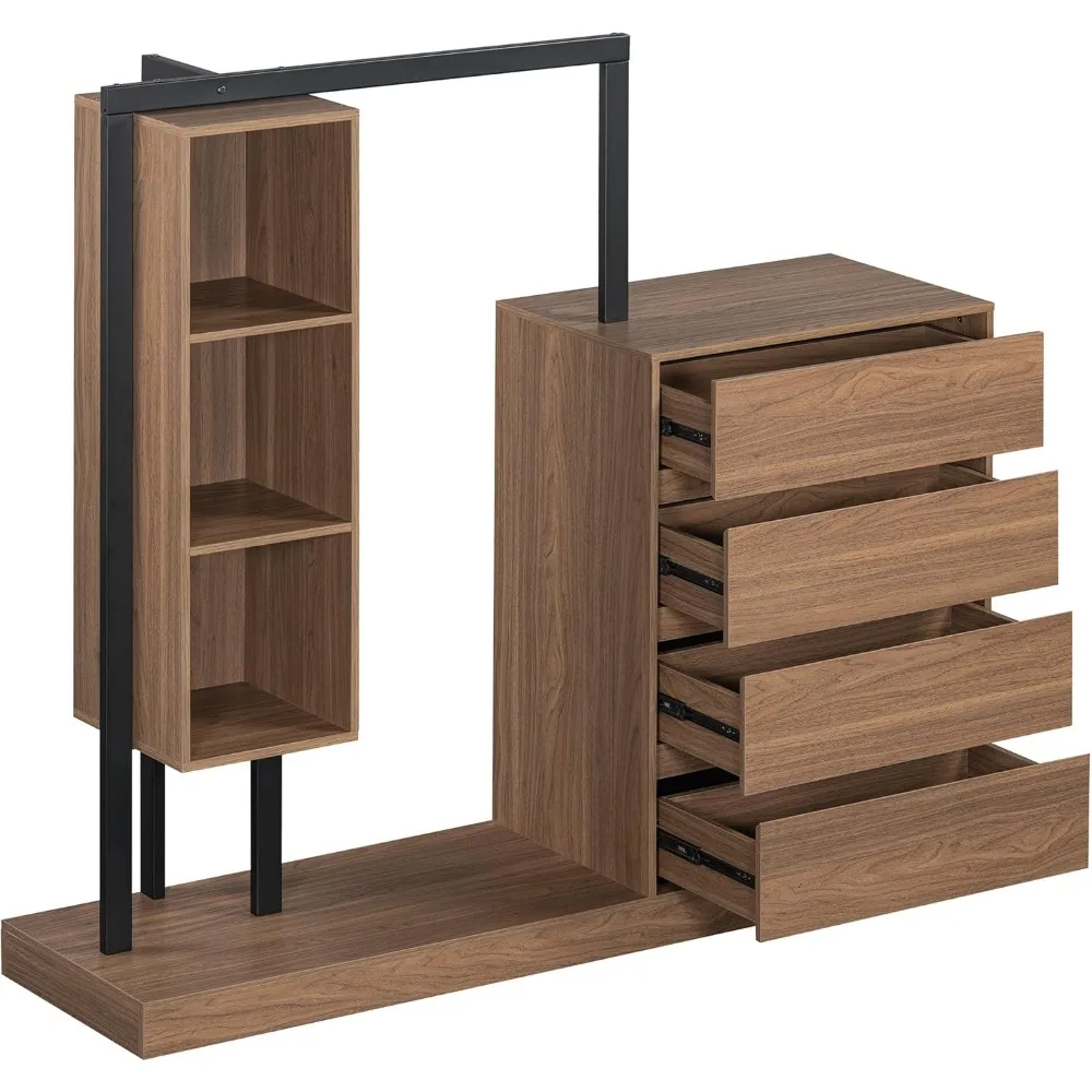 Garment Racks with 4 Drawers and 3 Shelves, Durable Clothes Rack for Hanging Clothes, Stylish Garment Racks for Bedroom, Living
