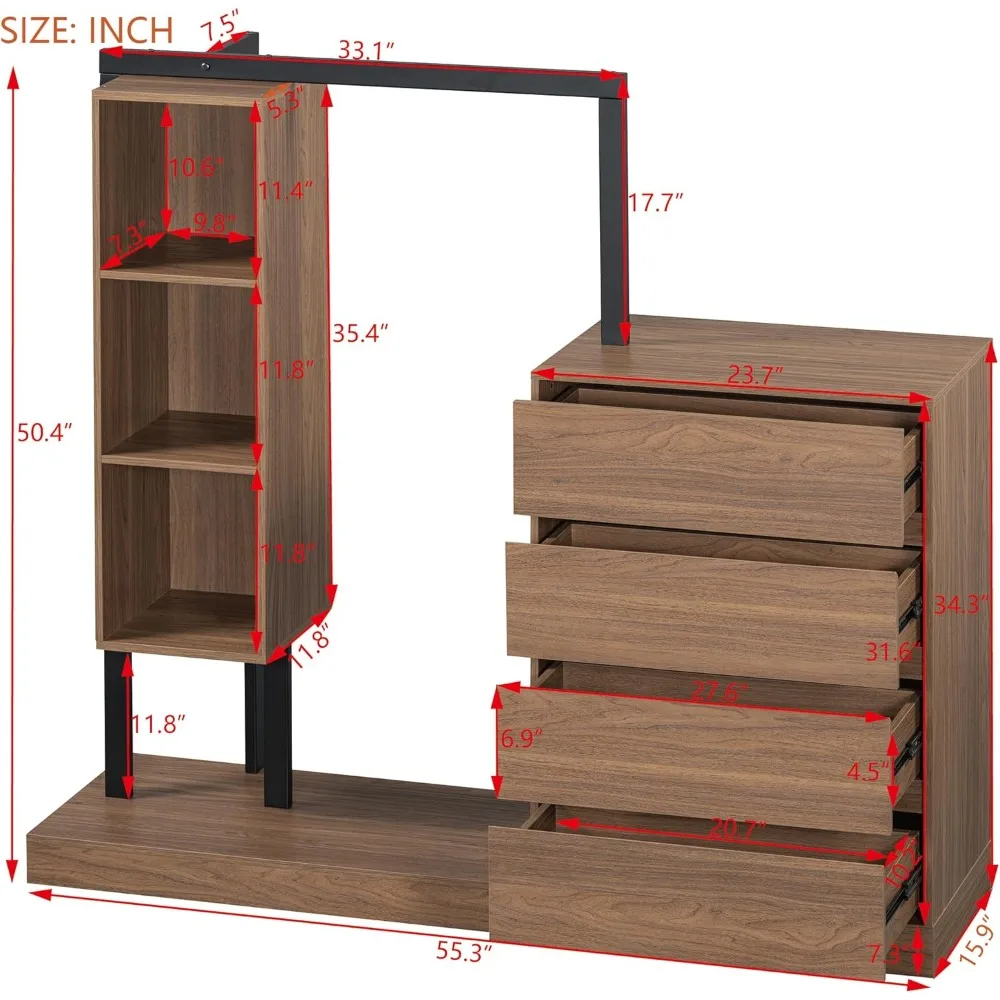 • [Spacious Storage] Featuring four generous drawers and additional cabinets, this wardrobe provides ample space for all your belongings, from clothes to shoes.