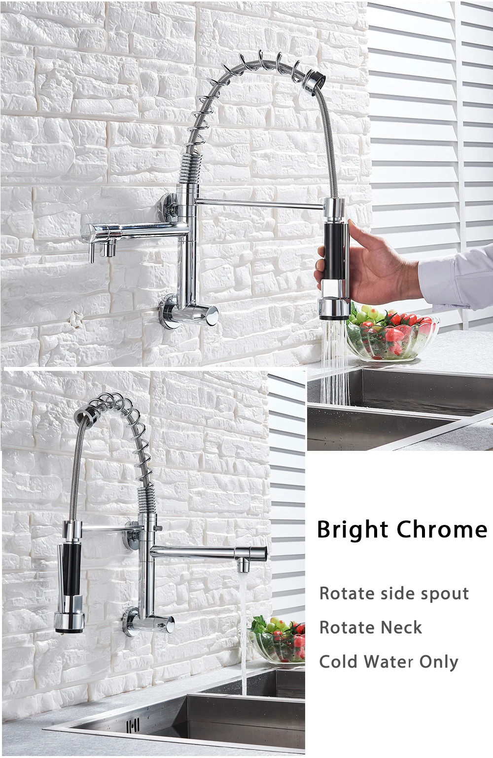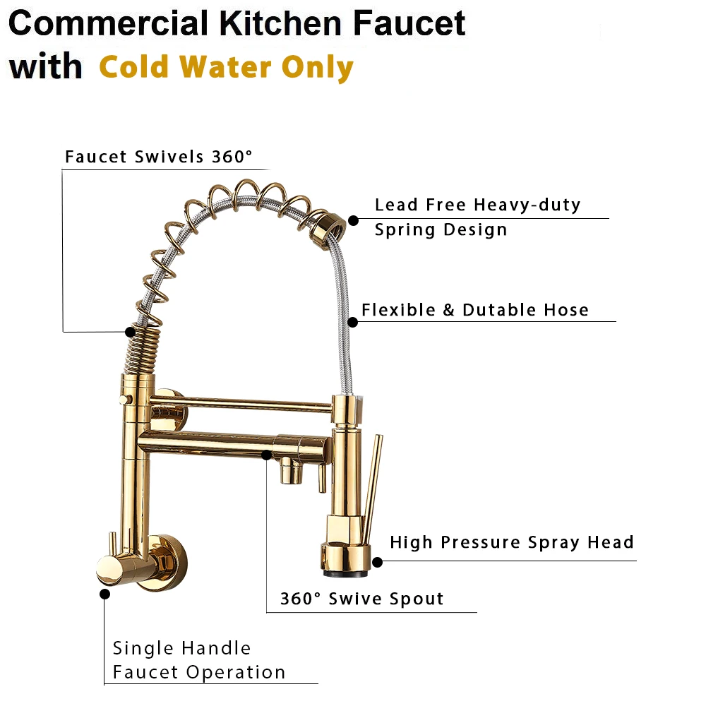Golden Spring Kitchen Faucet Swivel Side Sprayer Dual Spout Kitchen Tap Kitchen Sink Cold Water Faucet 360 Rotation
