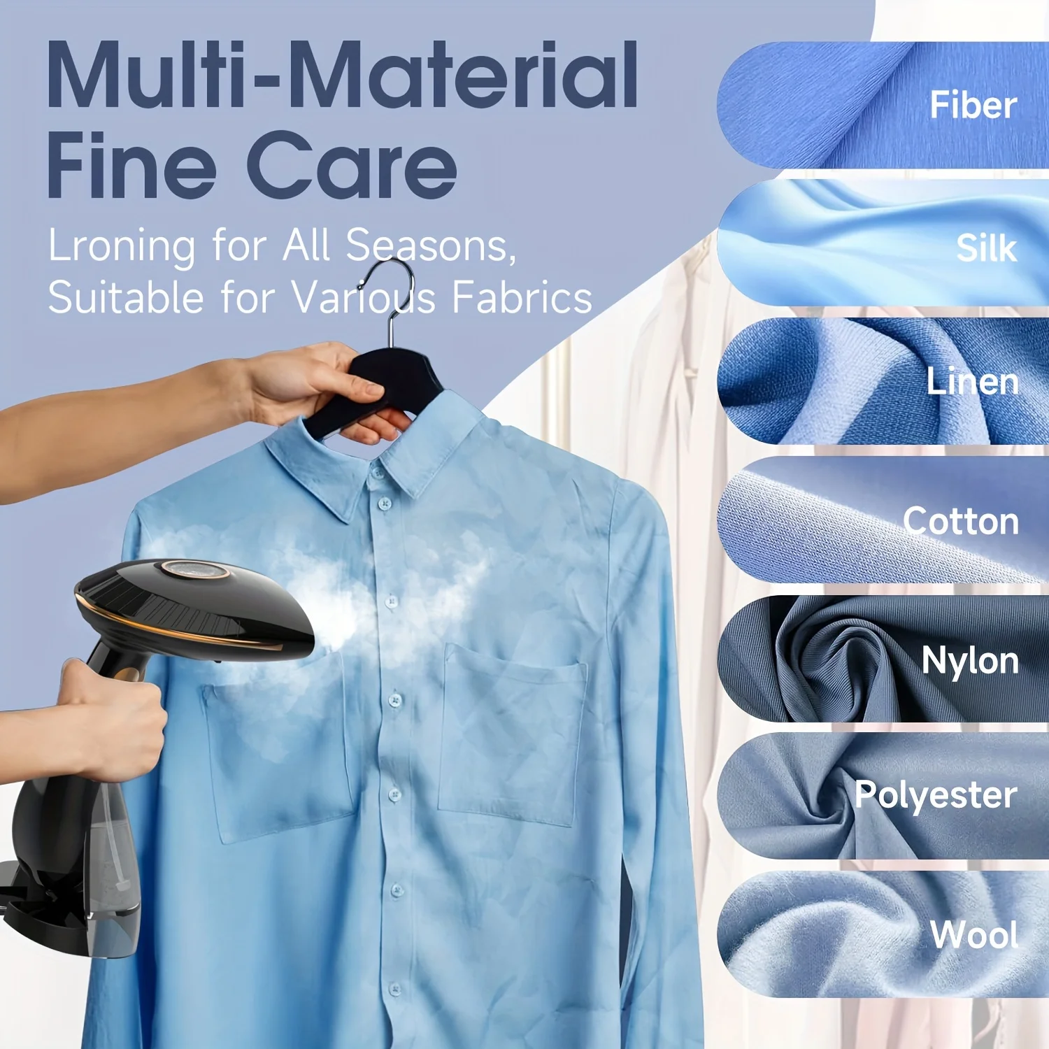 3. Eight-hole strong steam penetrates various clothes deeply, smooths stubborn wrinkles, and irons clothes for all seasons easily.