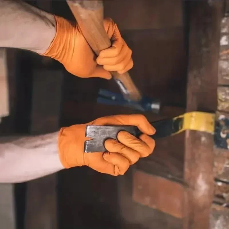 3. NITRILE DISPOSABLE GLOVES: We use a special nitrile formula to guarantee the durability of our heavy duty nitrile gloves. Each pair undergoes rigorous testing to ensure elasticity, puncture resistance, and tear resistance (tensile strength). Professionals rely on these nitrile disposable gloves to withstand intense work without compromising precision when handling delicate tools.