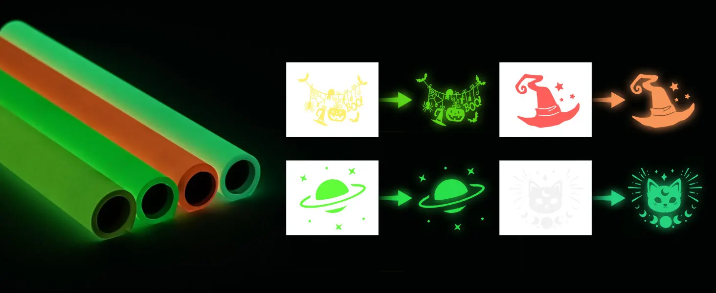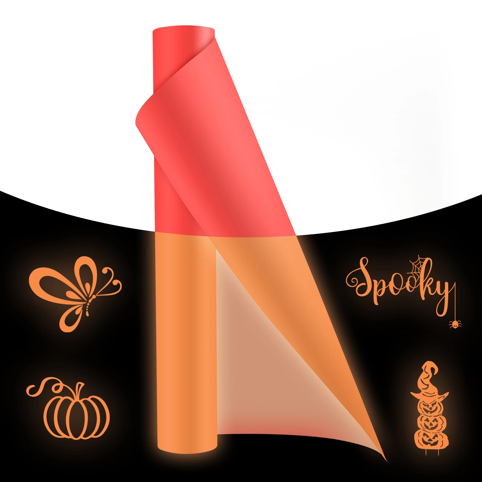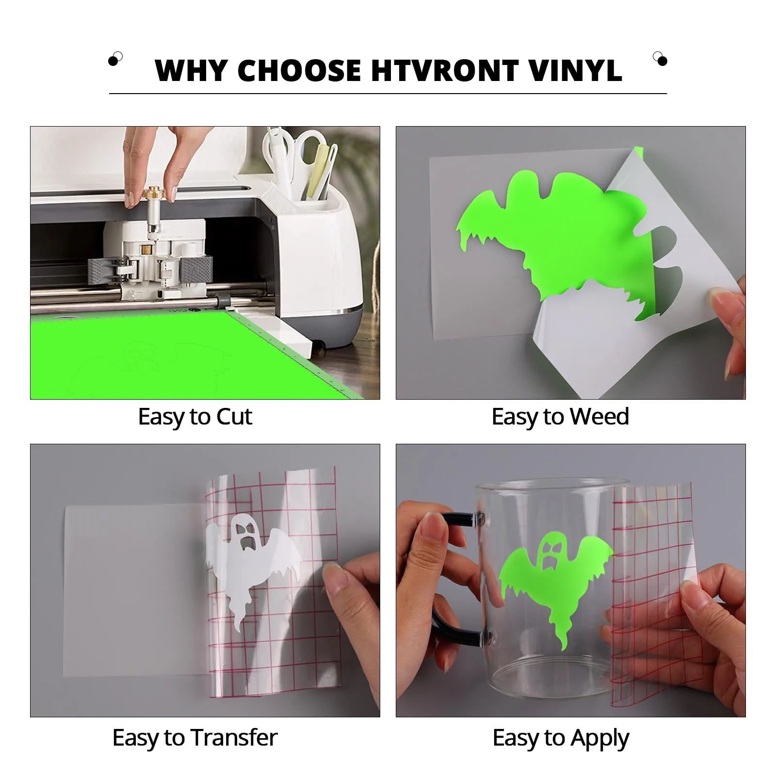 • PET BACKING: This glow-in-the-dark permanent vinyl adopts PET backing instead of paper backing. So, it can adhere firmly to the fabric with fewer bubbles and wrinkles. It is also efficient to peel to avoid ruining your cutting mat and pattern. You will get a complete pattern after peeling and don't need to clean the mat. HTVRONT permanent vinyl is committed to bringing you a better carfting experience.