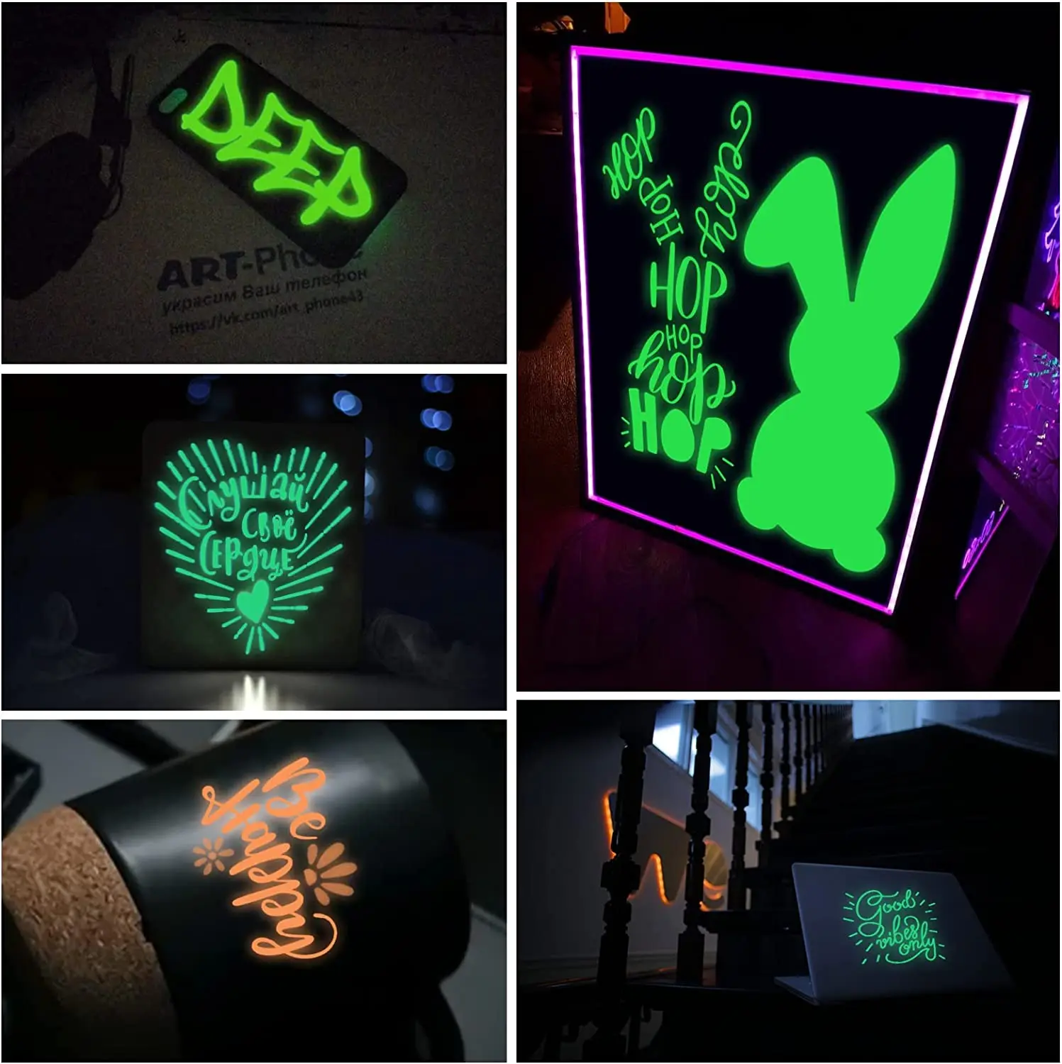 HTVRONT 12"x5ft Glow in Dark Permanent Vinyl Luminous Self Adhesive Vinyl Roll for Craft Cutter DIY Glass Neon Wall Decor