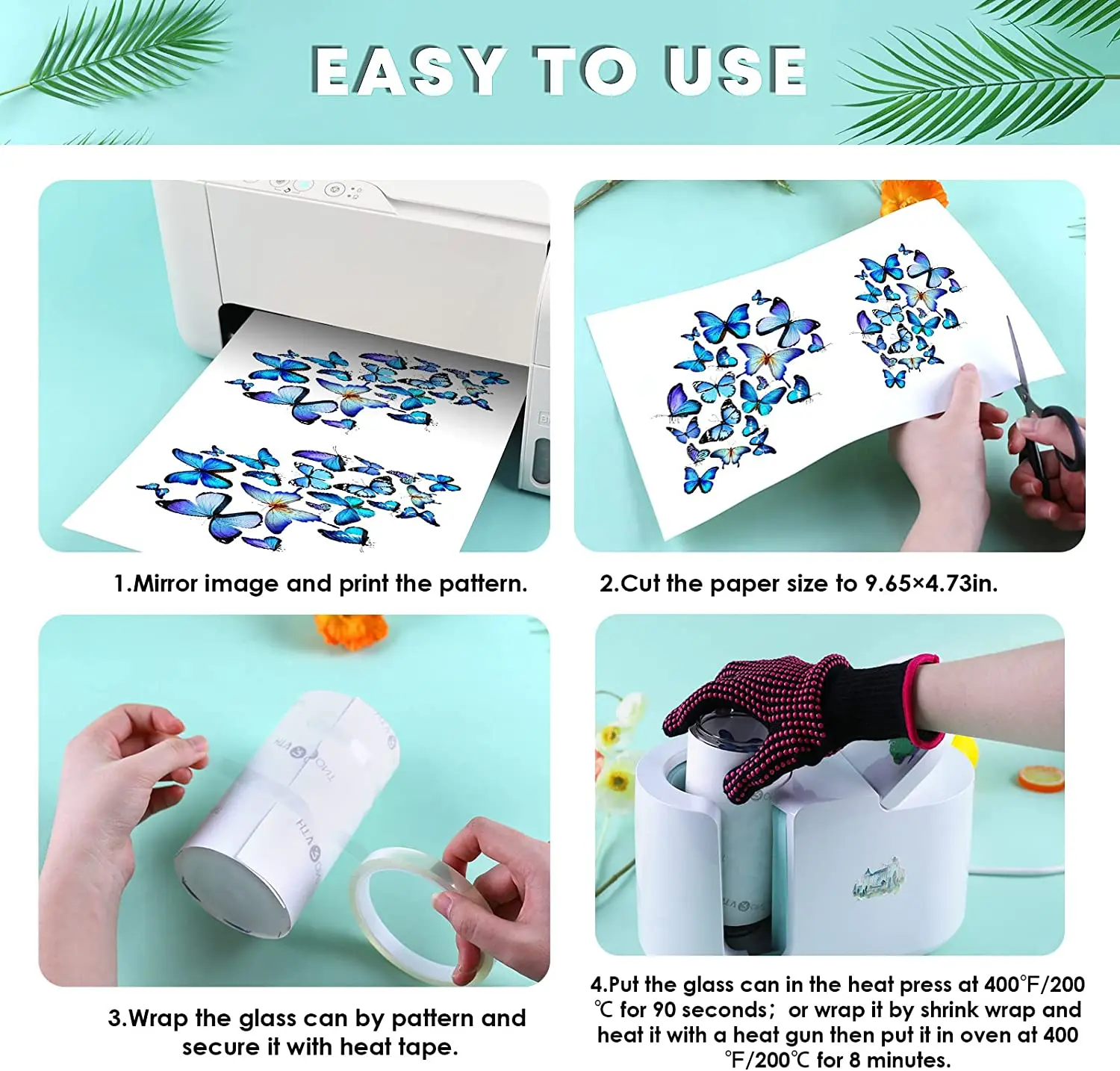 【Sublimate Beautifully 】HTVRONT sublimation glass blanks feature a high-quality sublimation coating, ensuring the vivid and crisp sublimation results for every project. To make a unique sublimation glass cup, you can either sublimate by a convection oven or a tumbler heat press. Super easy to make fabulous sublimation glass can! Note: Do not let the shrink wrap touch the surface of the glass can.
