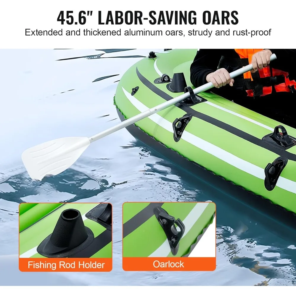 • Rust-Resistant Paddles Included: The inflatable dinghy boat kit comes with two extended, thick oars that resist deformation and breakage, allowing for efficient navigation with minimal effort. The aluminum alloy paddles with PP blades are built to withstand corrosion from saltwater.
