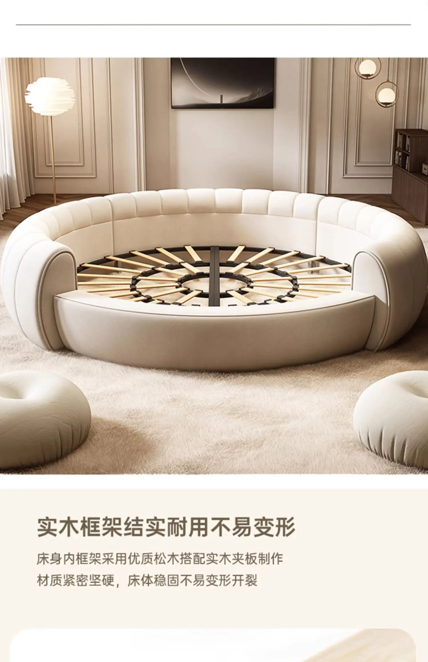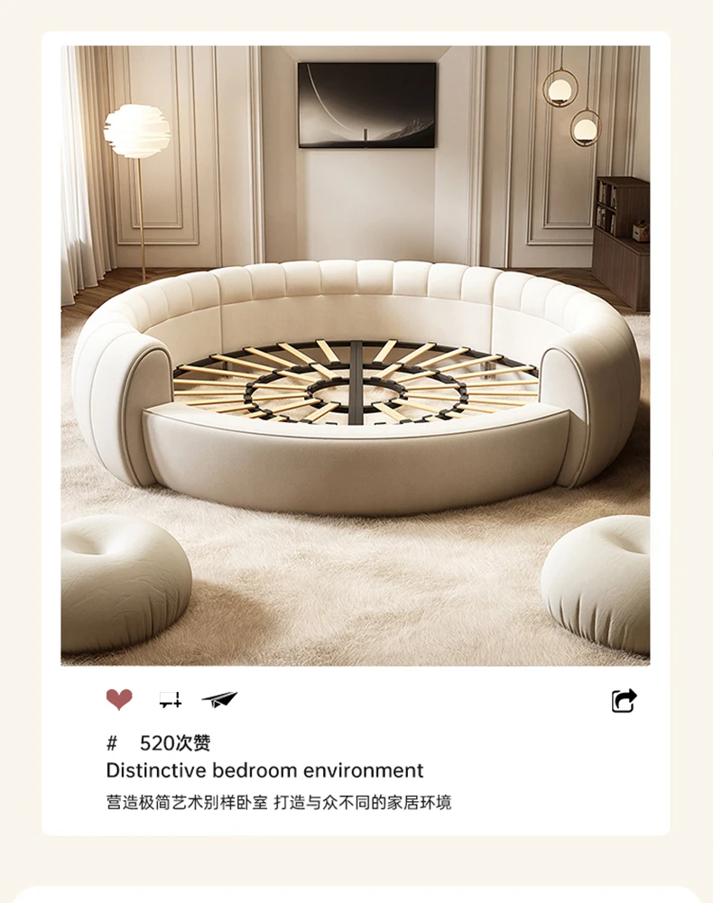 Italian Light Luxury Round Bed Cream Wind Bedroom Wedding Bed Princess Aesthetics Fashion Letto Matrimoniale Home Furniture
