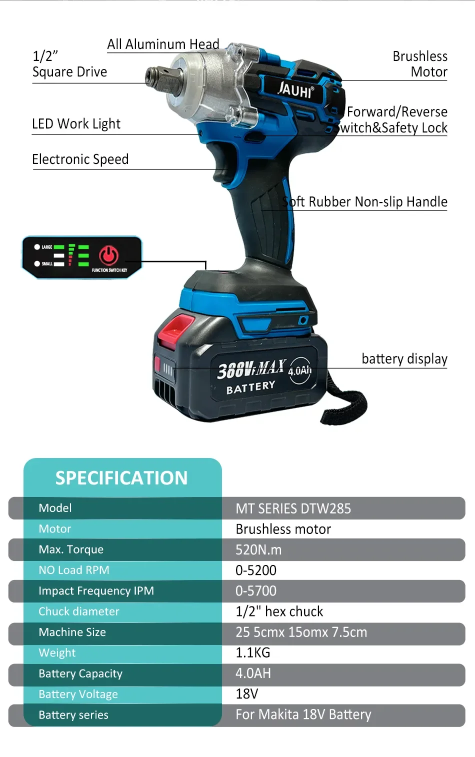 √ Battery Capacity Suggestion: 2.0AH - 5.0AH