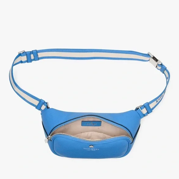 Authentic Kate Spade New York Guaranteed NWT Brand NEW with TagCollection: EmmaPebbled LeatherMetal Spade ♠️Interior slip pocketSignature Two way script logo liningZip ClosureBrand Embroidery on Webbing Belt Strap Adjustable 25.2- 40” lengthEasy Push Open Buckle ClosureWorn Across Chest or on WaistlineBrand Engraved on HardwareLight Gold Toned HardwareFits largest cellular phone / iPhone pro maxSize: 5” H x 9.5” W x 3” DColor: Tide Pool (Azure Blue)MSRP $299 plus tax